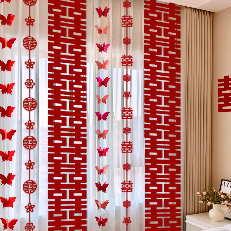 カーテン掛け飾り結婚男性の新しい部屋の喜字花飾り女性の寝室の結婚式の結婚部屋の配置セット
