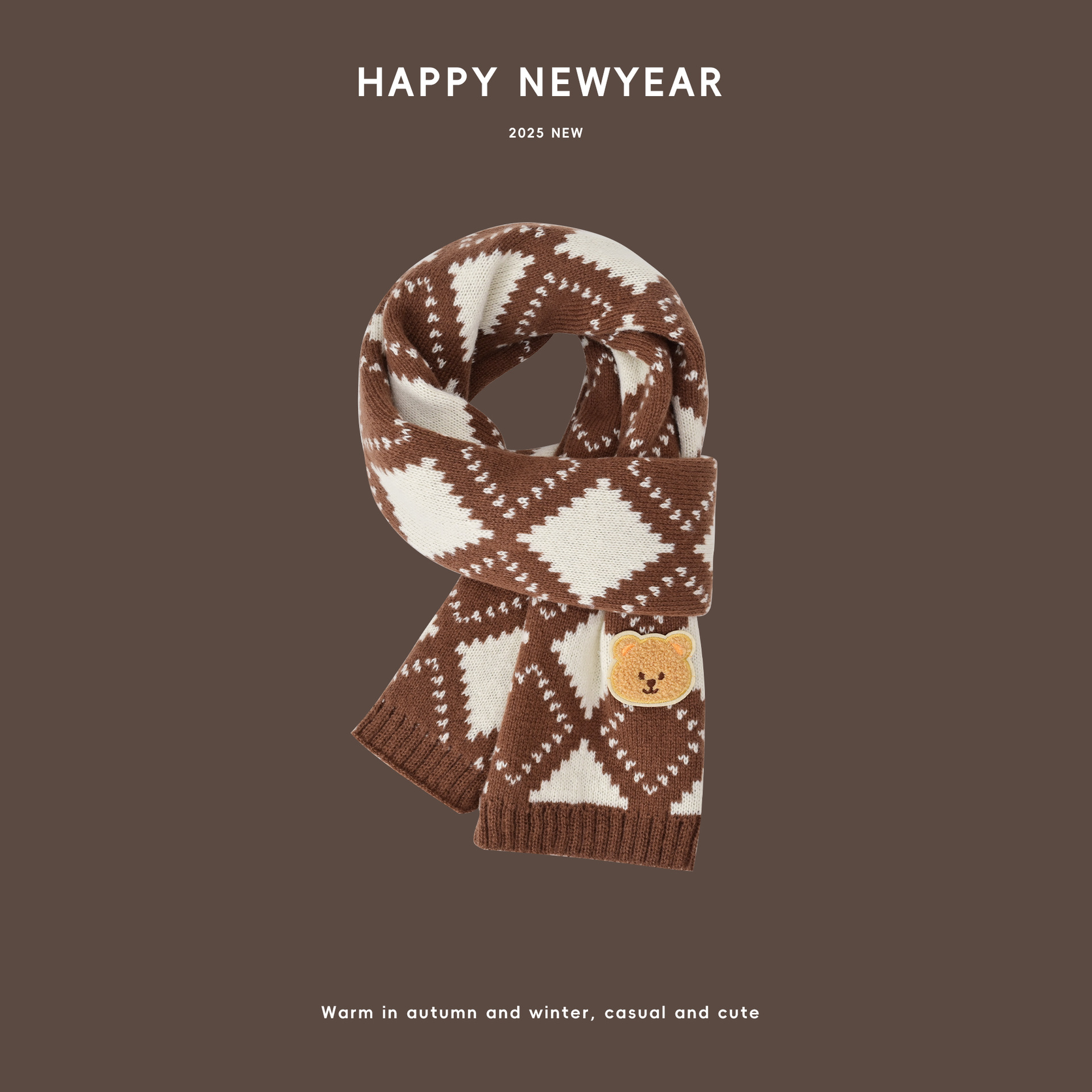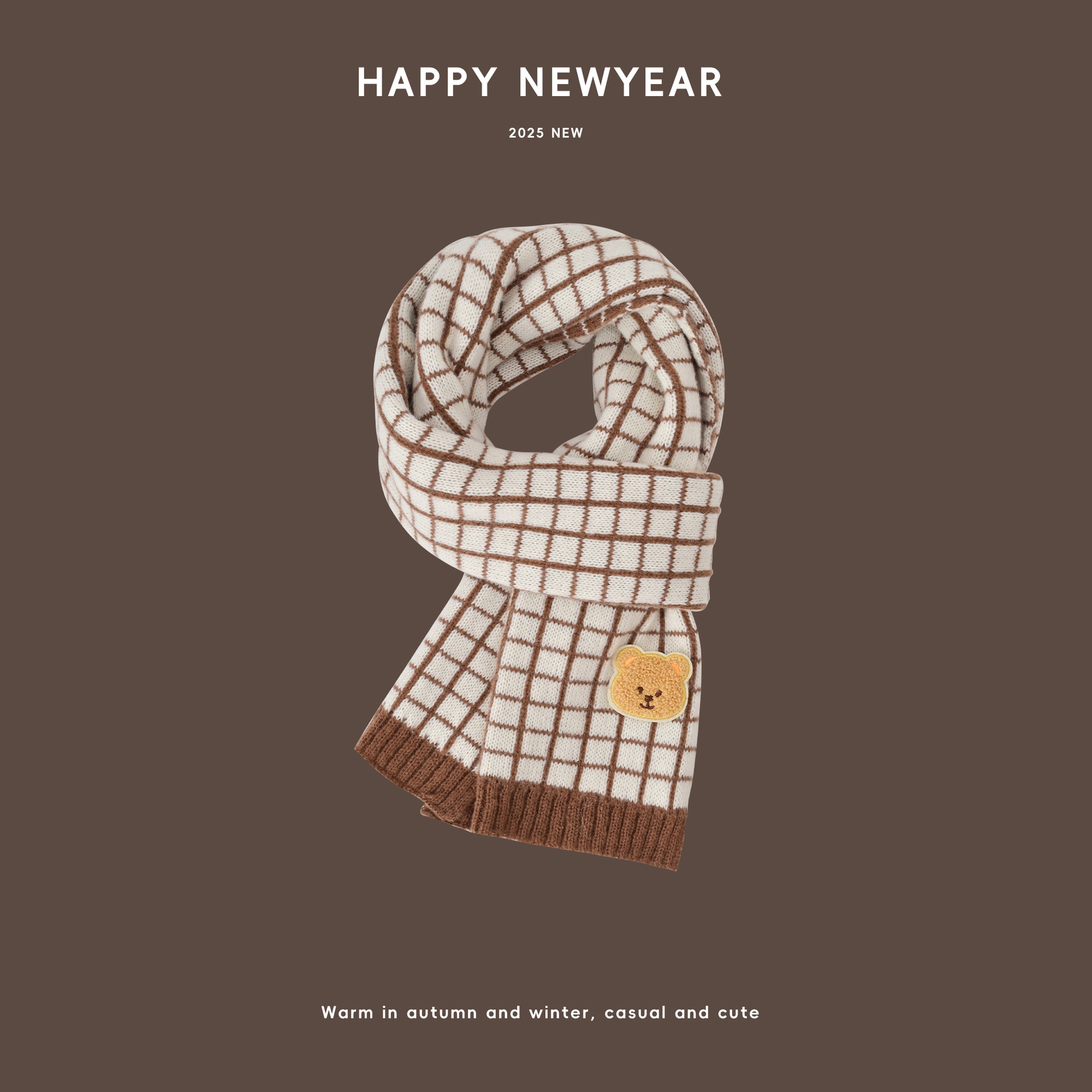 新しい韓国の子供のマフラーの男性は色の洋気の赤ちゃんのマフラーの女性のかわいい熊の格子のニットの保温の首カバーにぶつかります。
