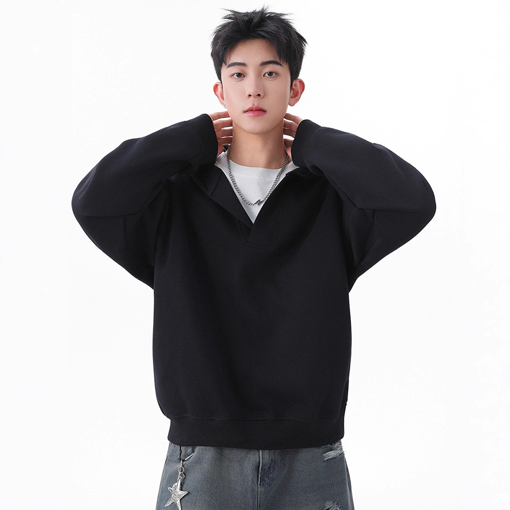 简恒假两件V领连帽卫衣男春秋新款宽松慵懒百搭帽衫男生休闲上衣