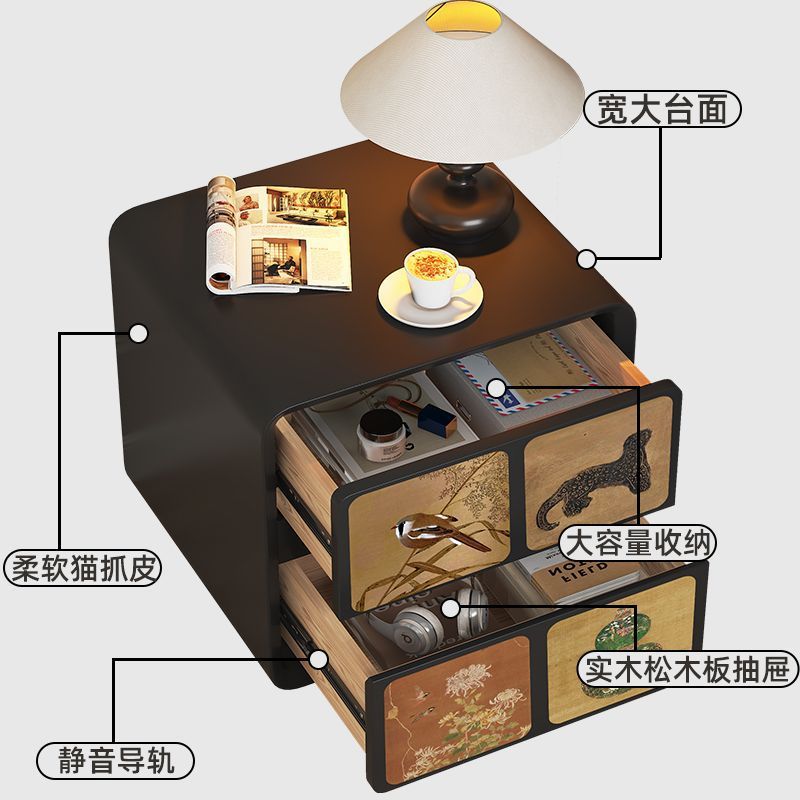 中古风床头柜主卧复古风设计感小众中古实木床边柜创意黑色收纳柜