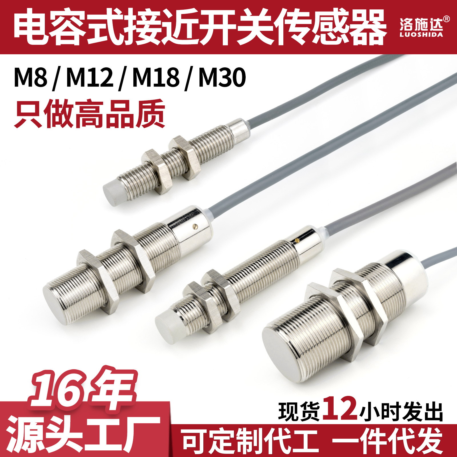M8m12m18金属シェル静電容量式近接スイッチ円筒型非金属検出スイッチセンサー材料線