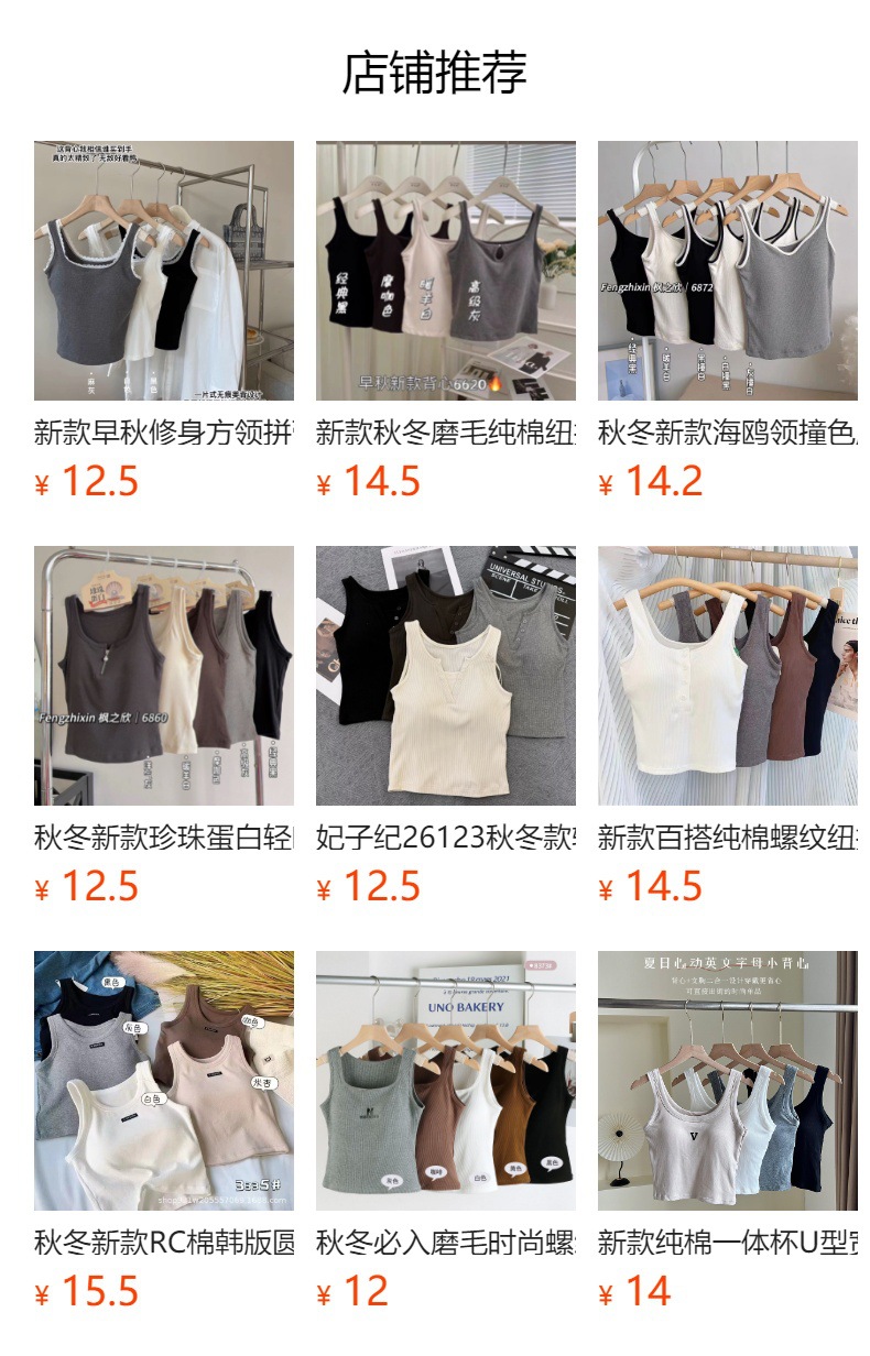 夏季新款珍珠蛋白轻暖一体式杯垫拉链螺纹纯棉针织方领背心女
