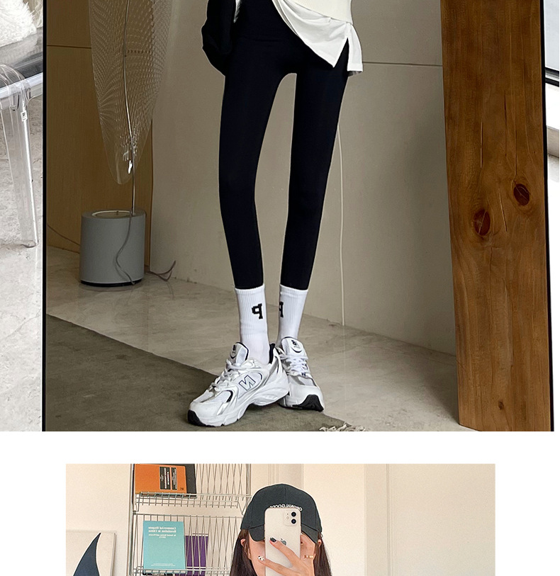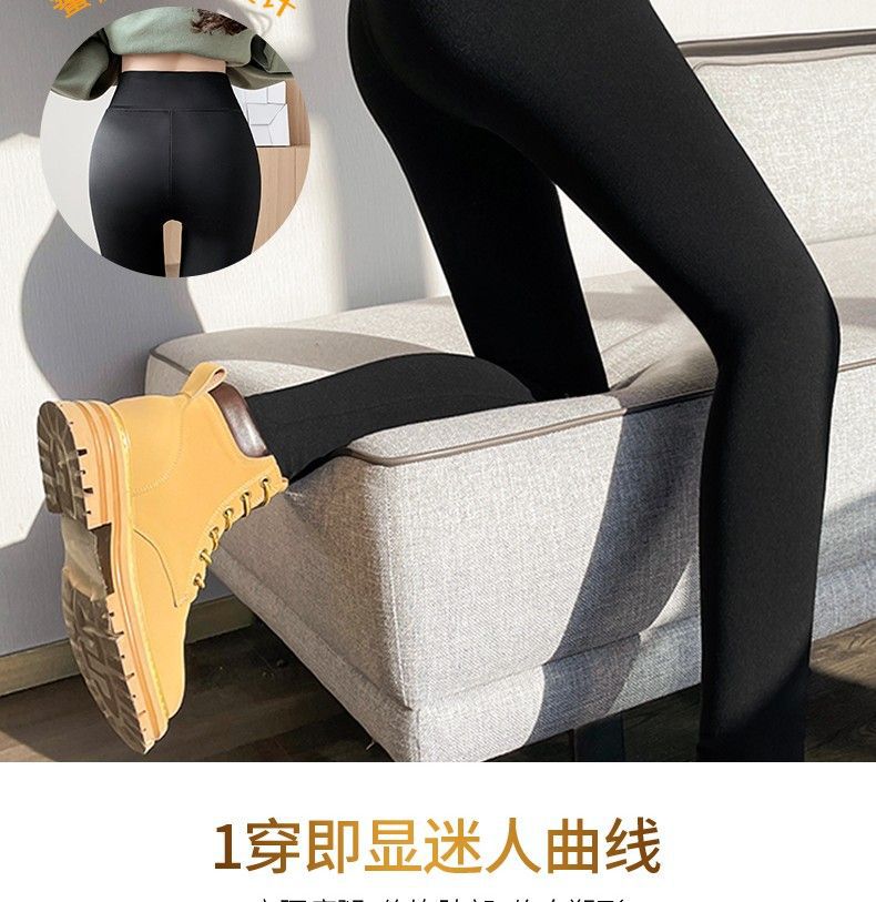 2018新作春と秋の光沢のあるズボンの外に女性の黒いズボンの靴下を着て、腰が高くて足のズボンの小さい足のズボンを踏みます。