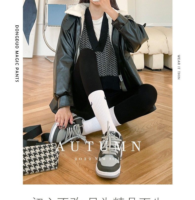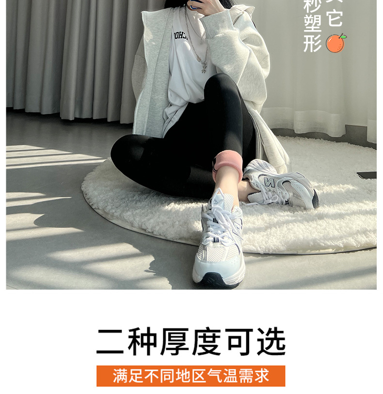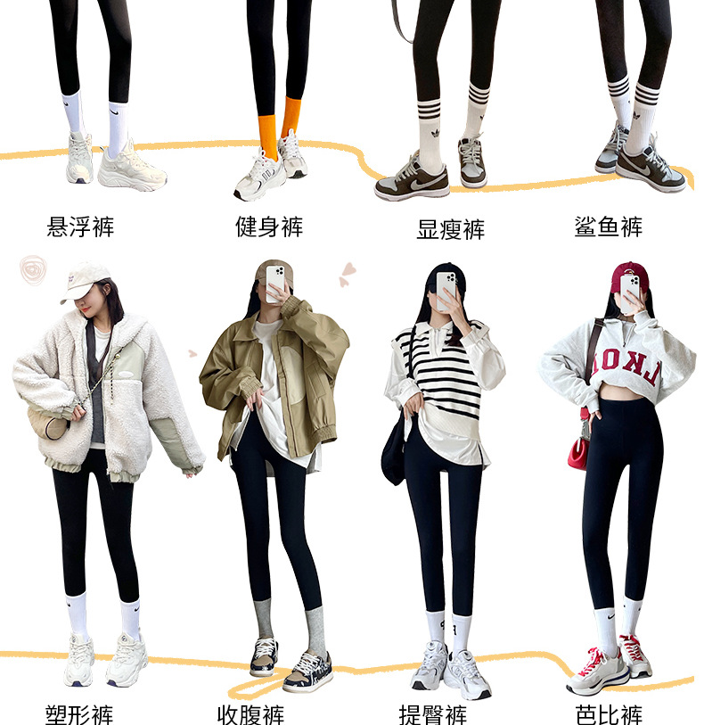 拉链收腹鲨鱼裤女秋冬季外穿加绒加厚打底裤高腰提臀紧身瑜伽裤子