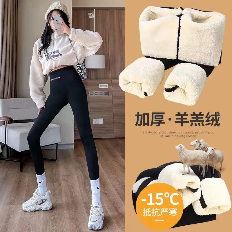 厚い羊のベルベットのサメのズボンの女性は冬の春と秋のガードルの保温綿のズボンとベルベットのヨガのバービーのズボンを着ています