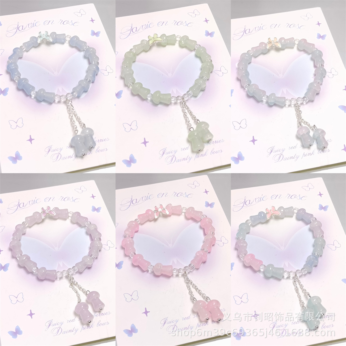 新款超仙森系蝶意蘑菇水晶手链女高颜值简约百搭学生手串景区热销