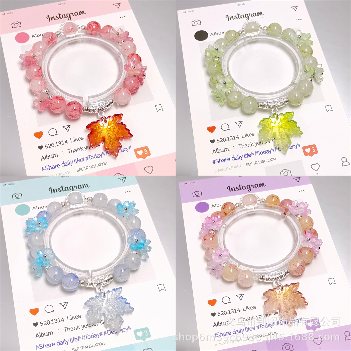 原创设计新款水墨枫叶水晶手链中式百搭高级感时尚手串景区热销款