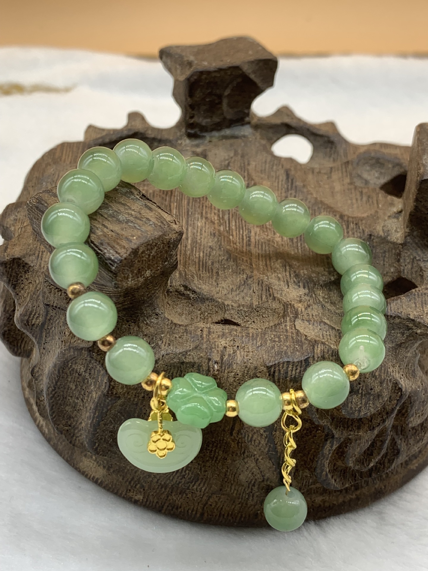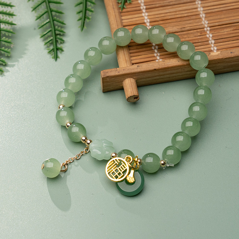 小清新碧玉色双輪ブレスレット女性桃花平安ボタンファッション百合手串観光地区の人気アクセサリー卸売り