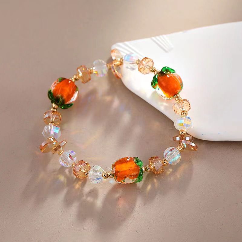 柿柿如意オリジナル黄水晶手串森系小清新瑠璃柿ブレスレット新年金潮少女プレゼント