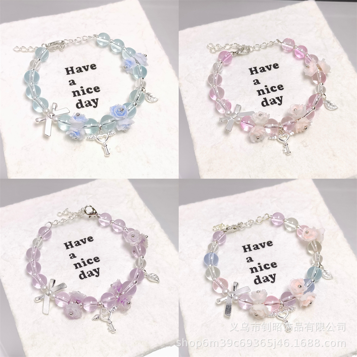 新款超仙甜美软花记忆钢圈手链小众轻奢百搭学生夏日冰透水晶手饰