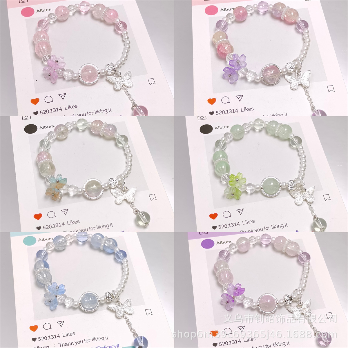 新款甜美爆花水晶铃兰花手链小众设计蝴蝶轻奢高颜值手饰厂家直销