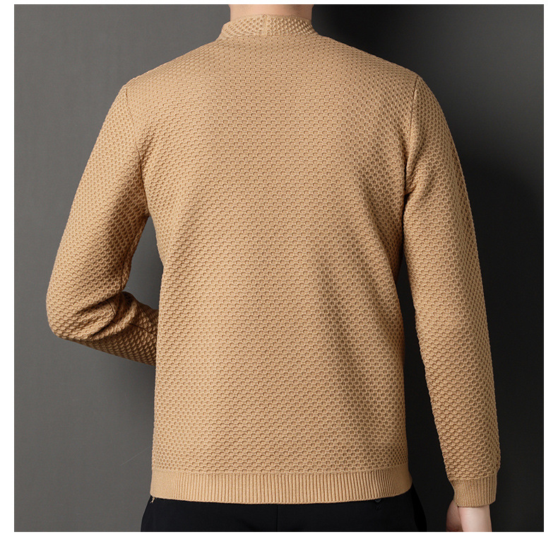 2025秋季新款男士无领针织开衫中年时尚百搭纯色休闲毛衣