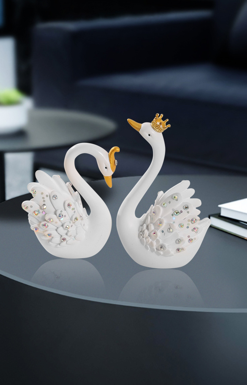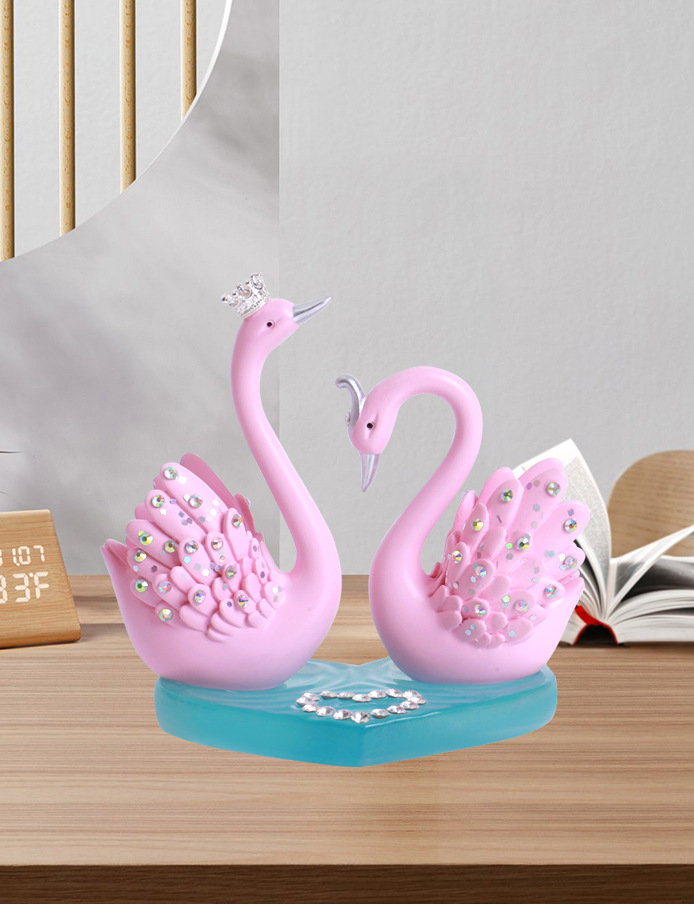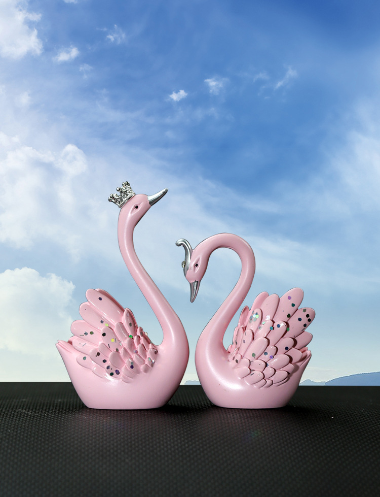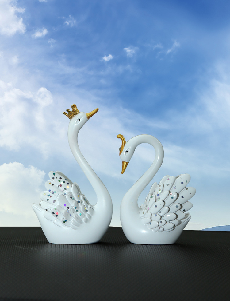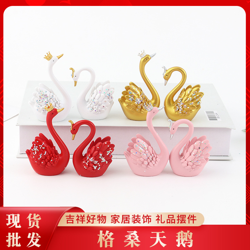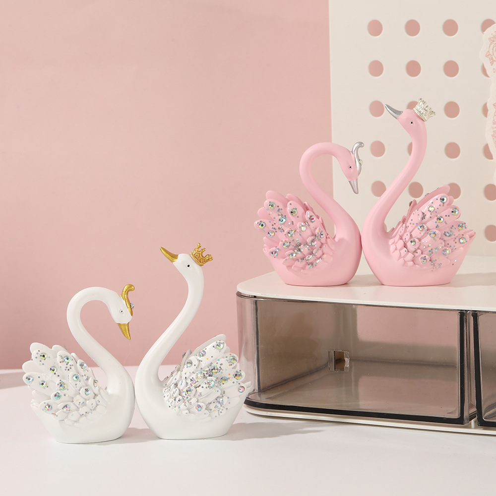 创意镶钻天鹅摆件轻奢情侣款天鹅装饰工艺品家居工艺桌面树脂摆件
