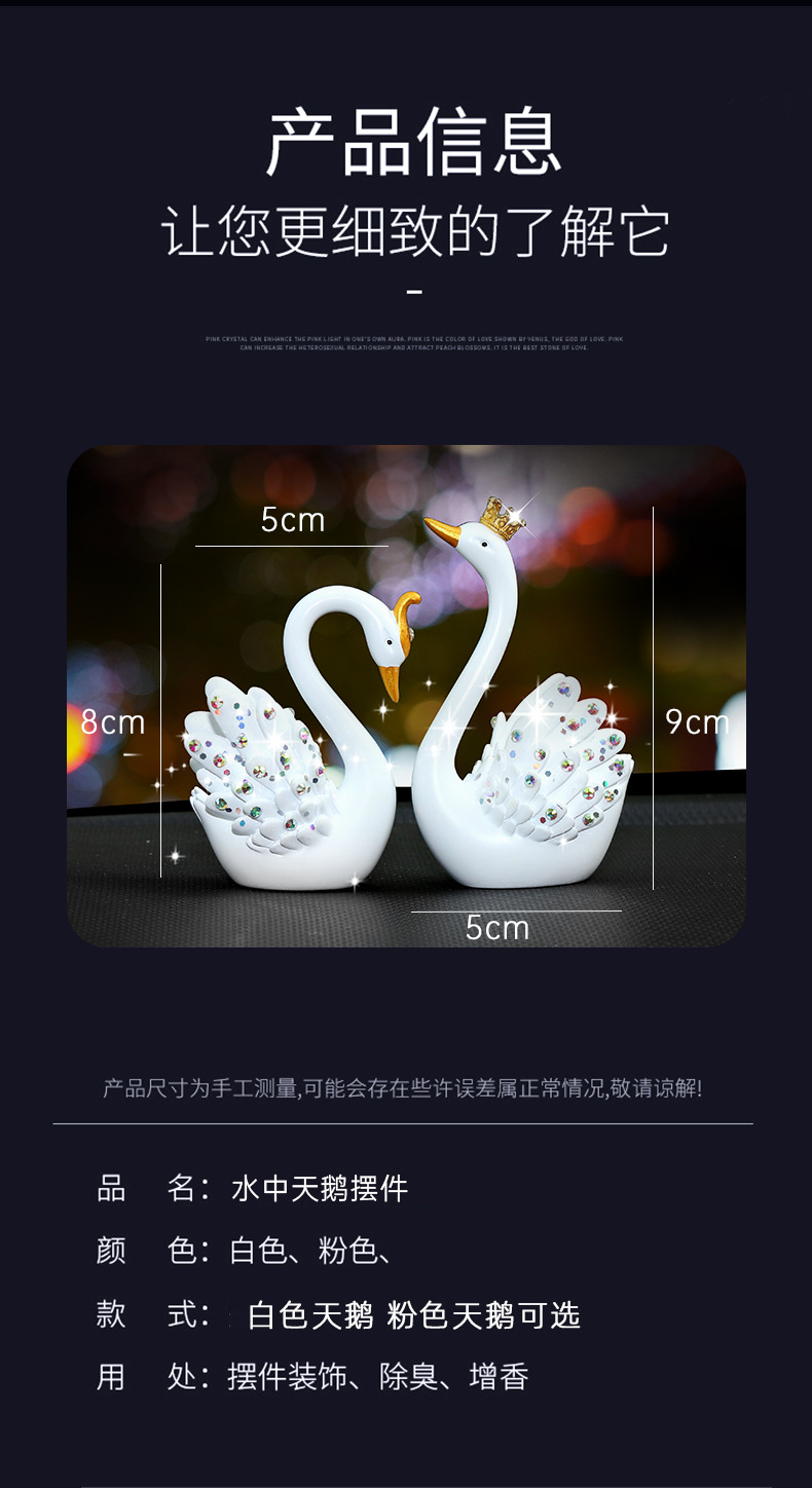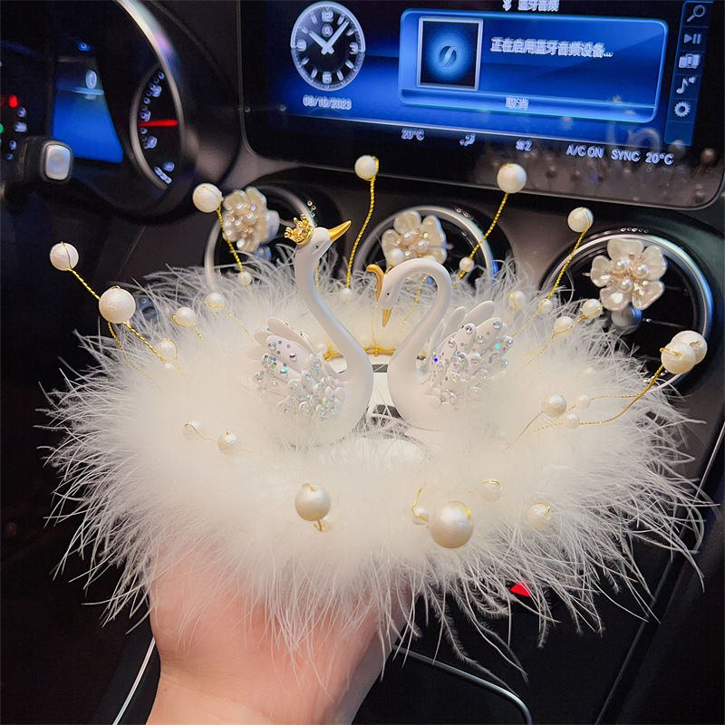 車の装飾品、車内用アロマ、センターコンソール、白鳥、車載オフィス装飾、車内インテリア、クリエイティブな車の装飾、ラインストーン付き