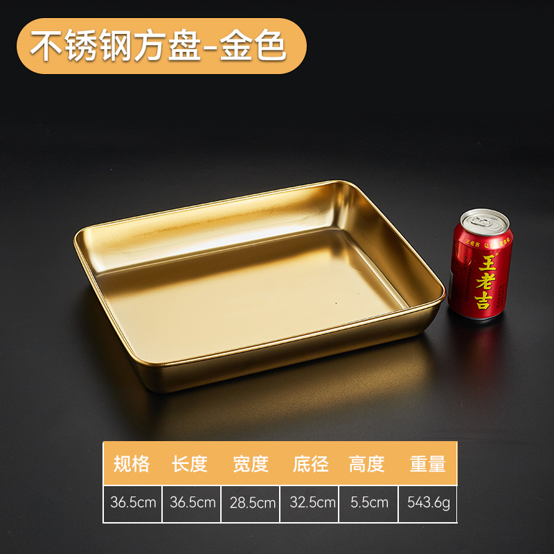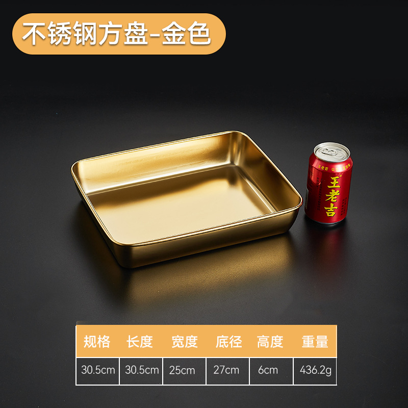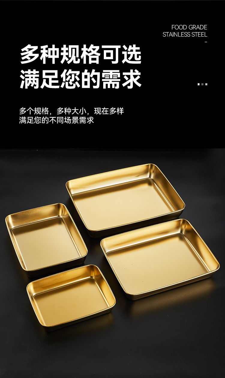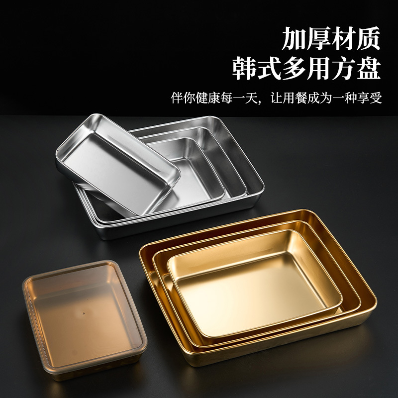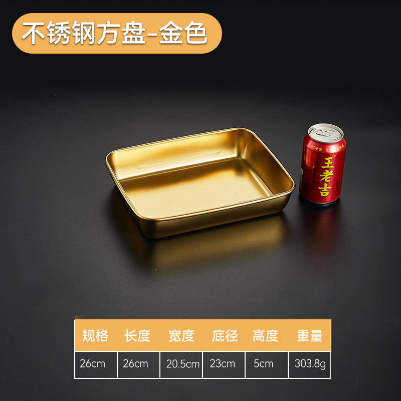 304韓国式焼肉ステンレス金色トレー角皿バーベキュースナック皿鍋料理皿餃子ファストフード工場
