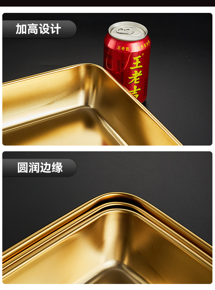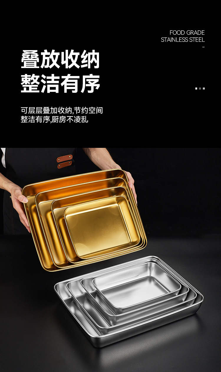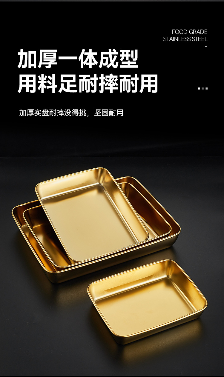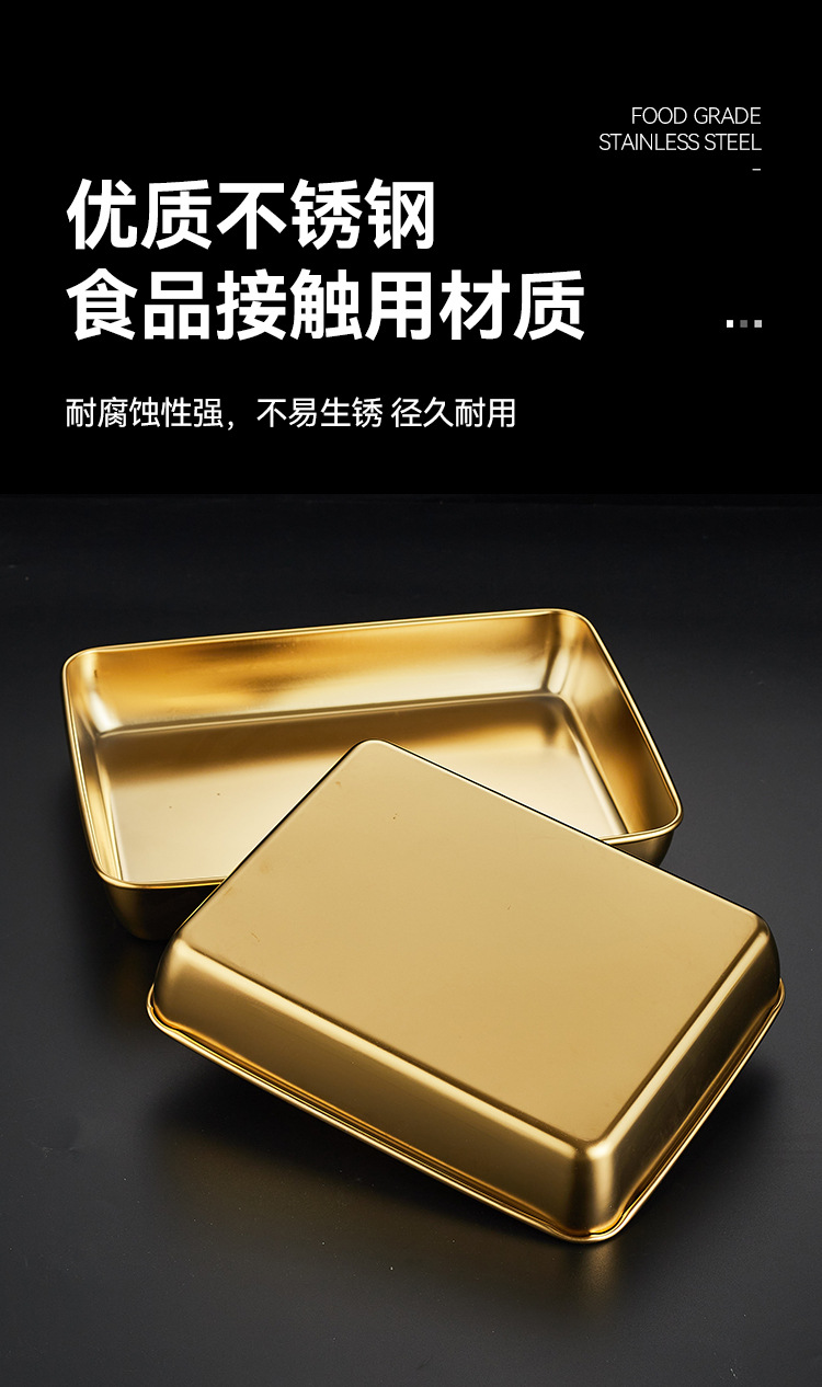 304韓国式焼肉ステンレス金色トレー角皿バーベキュースナック皿鍋料理皿餃子ファストフード工場