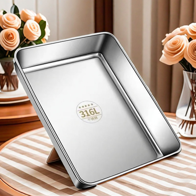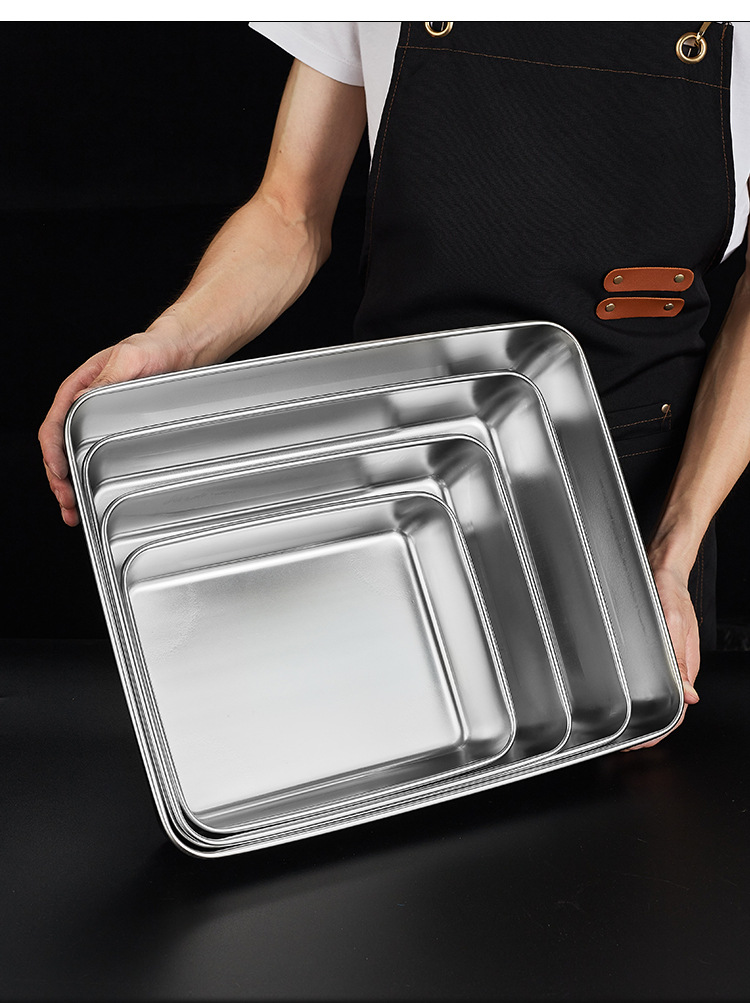 316不锈钢特厚方盘商用摆摊多用凉菜盘蒸托盘毛巾盘平底加厚蒸盘