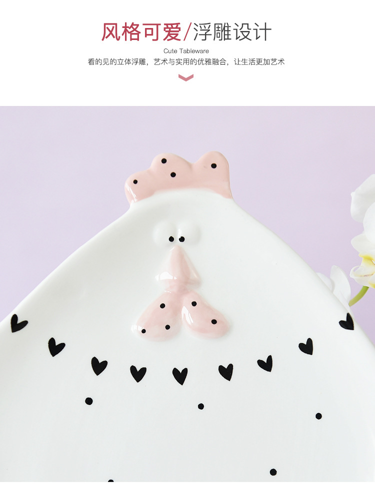 Ins赤い砕花鶏陶磁器皿デザート皿朝食皿昼食茶陶磁器菓子皿鶏型皿イースター
