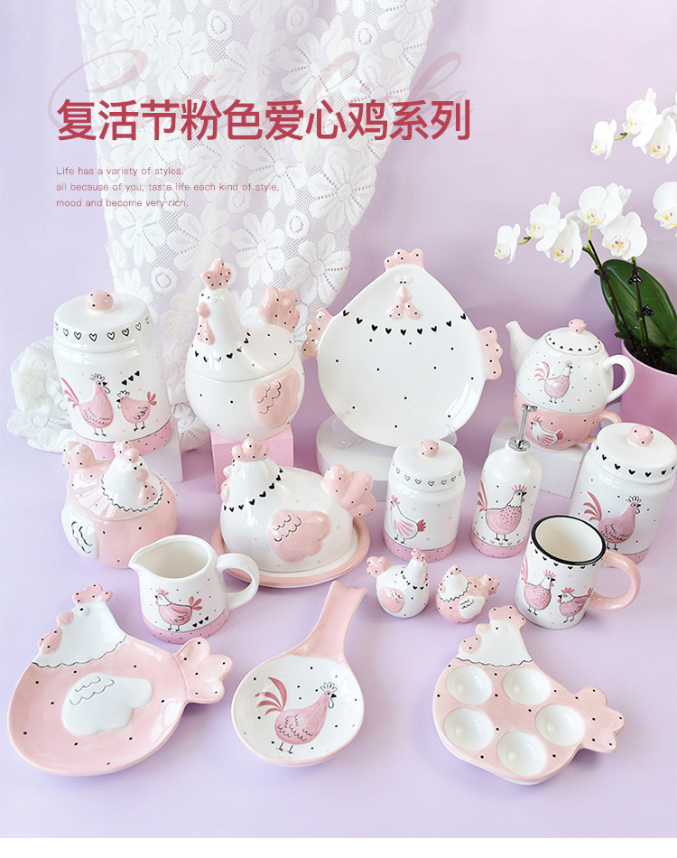 インスタ风食器赤砕花鶏セラミック调味缶砂糖缶塩缶クリエイティブ鶏型调味缶イースター