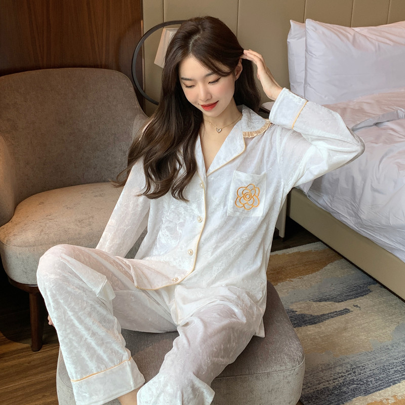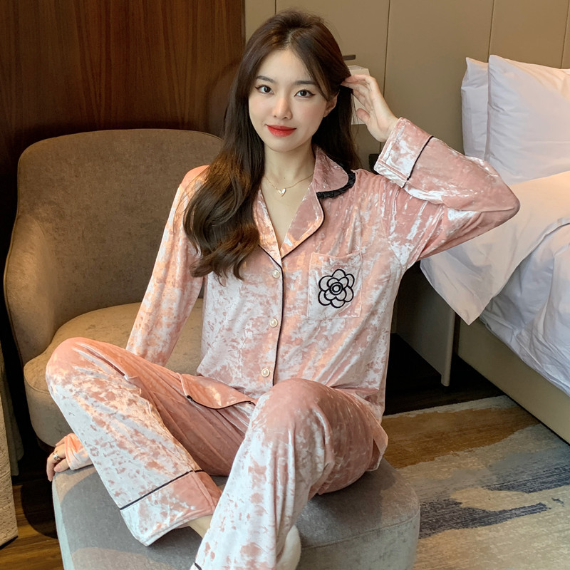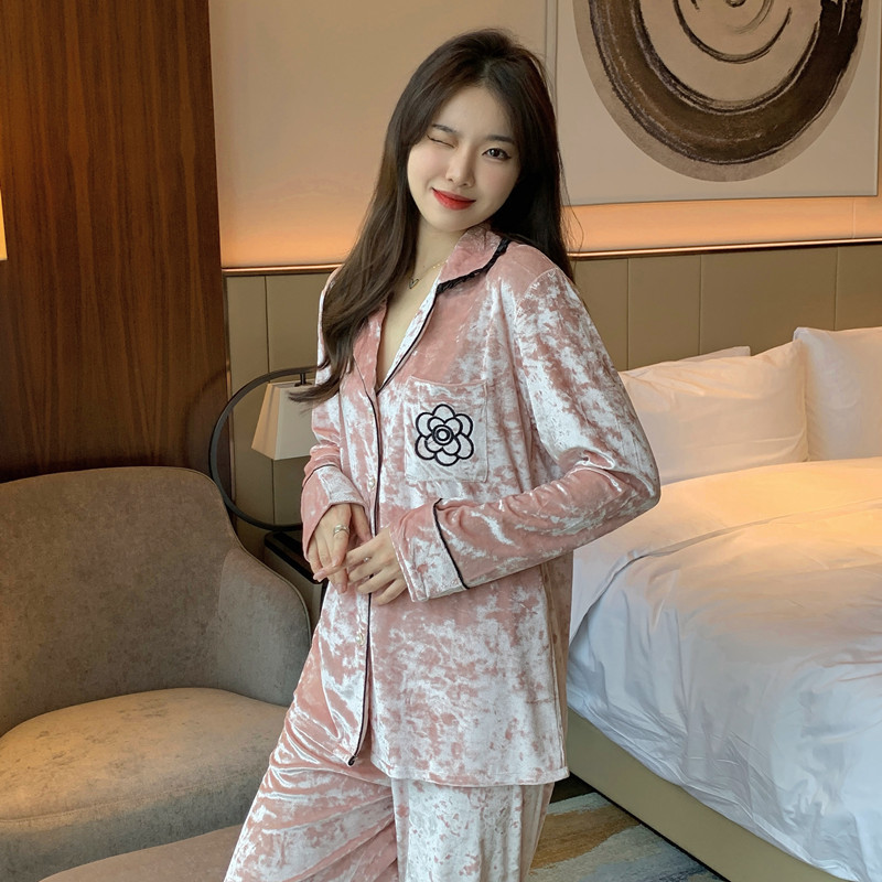 生中継パジャマ女性秋冬金糸パイルツバキ長袖長ズボン豪華なbricsパイル春秋高級感ホームウェア