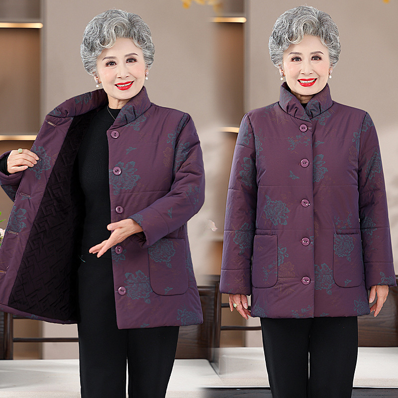 お母さんは秋冬にベルベットを着てコートを厚くして、年配の女性のおばあちゃんはセーターのカーディガンを着て、空気が暖かい上着を着ています