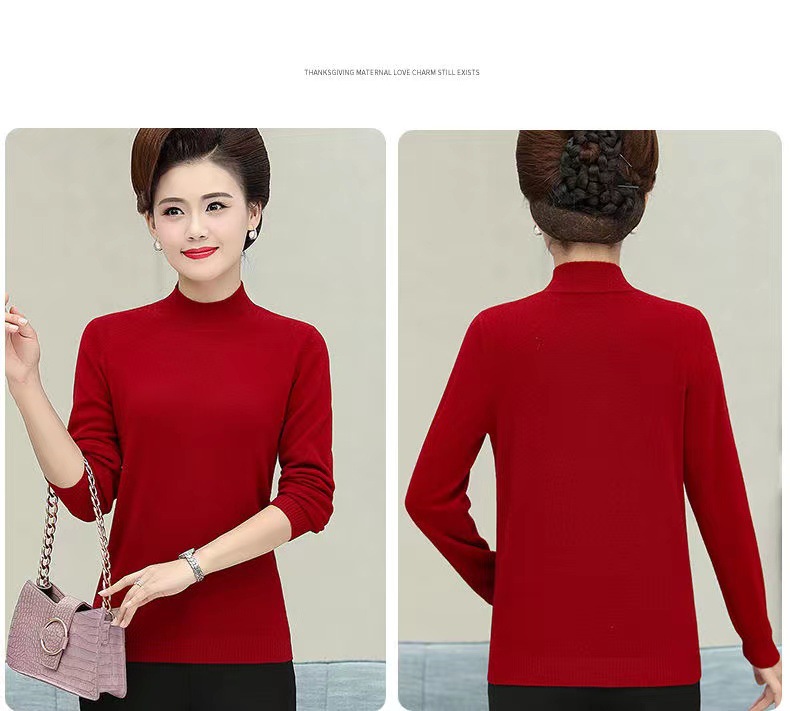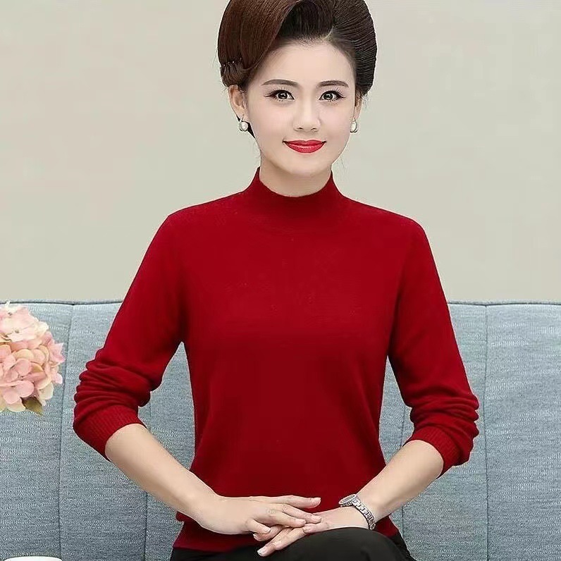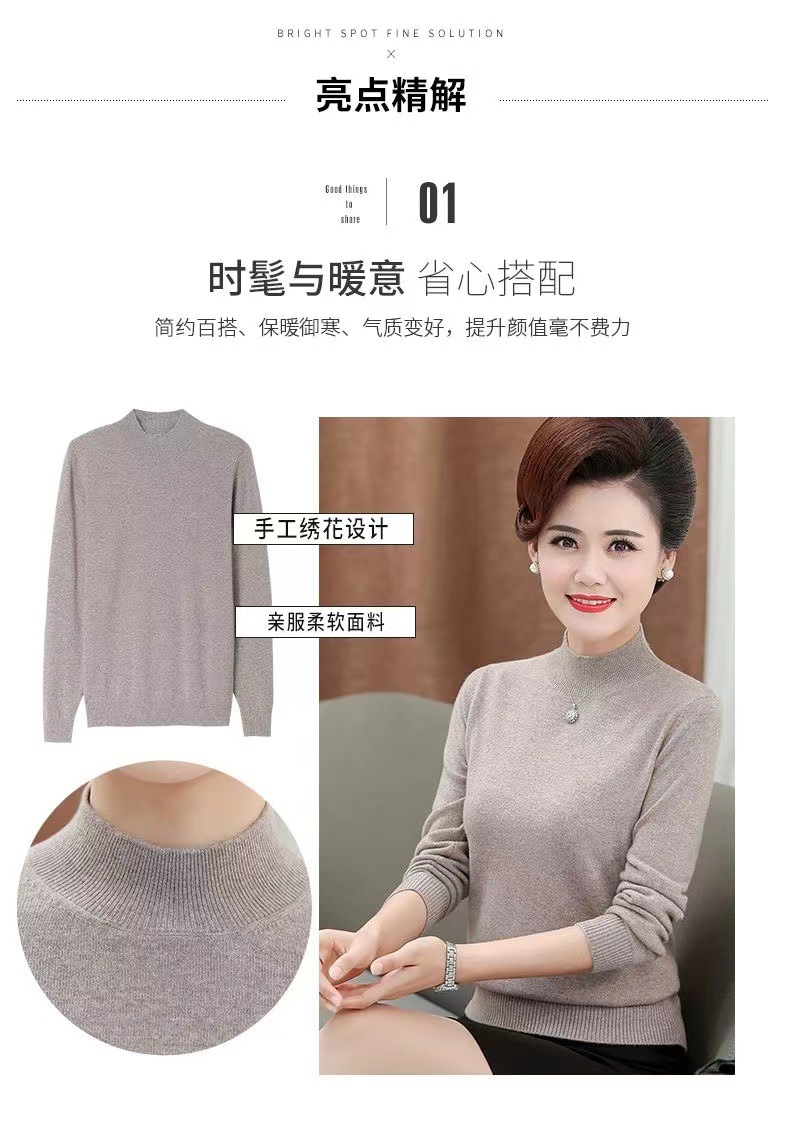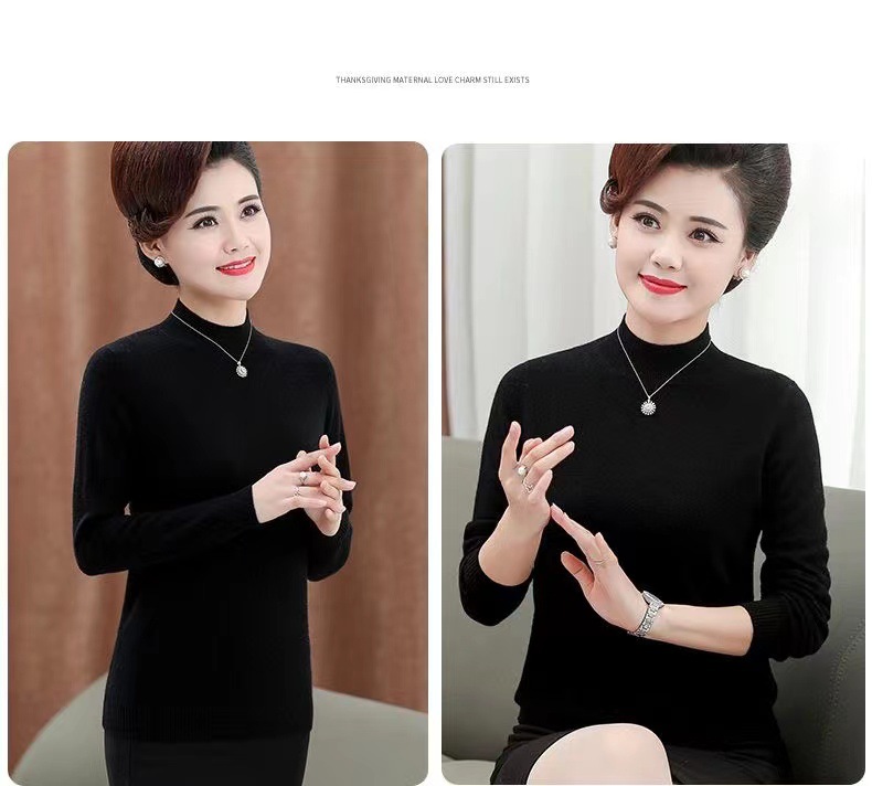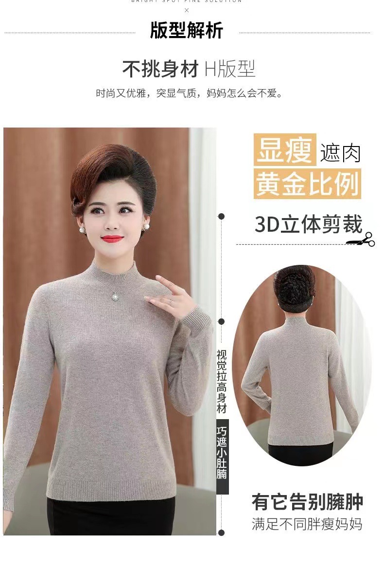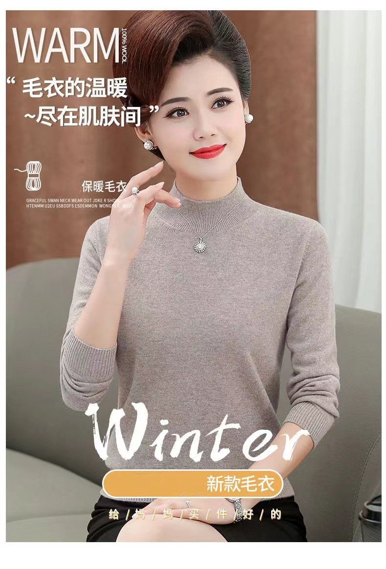 中年妈妈装针织毛衣女中老年人女装秋冬打底衫半高领内搭毛衣洋气