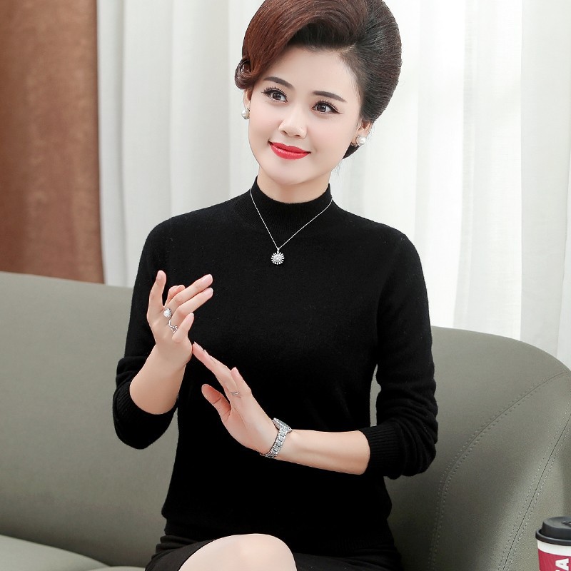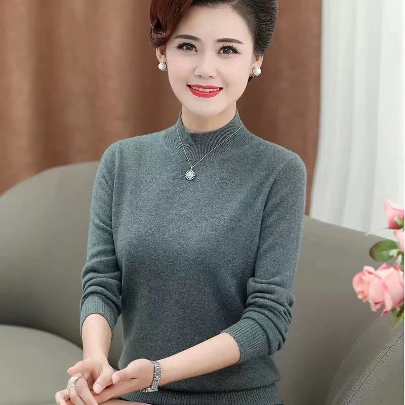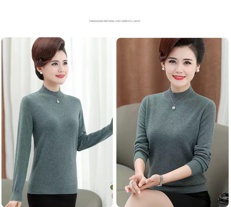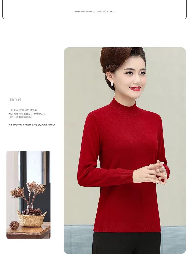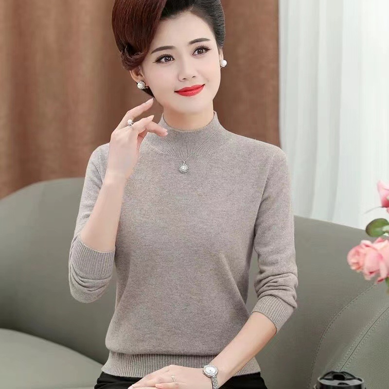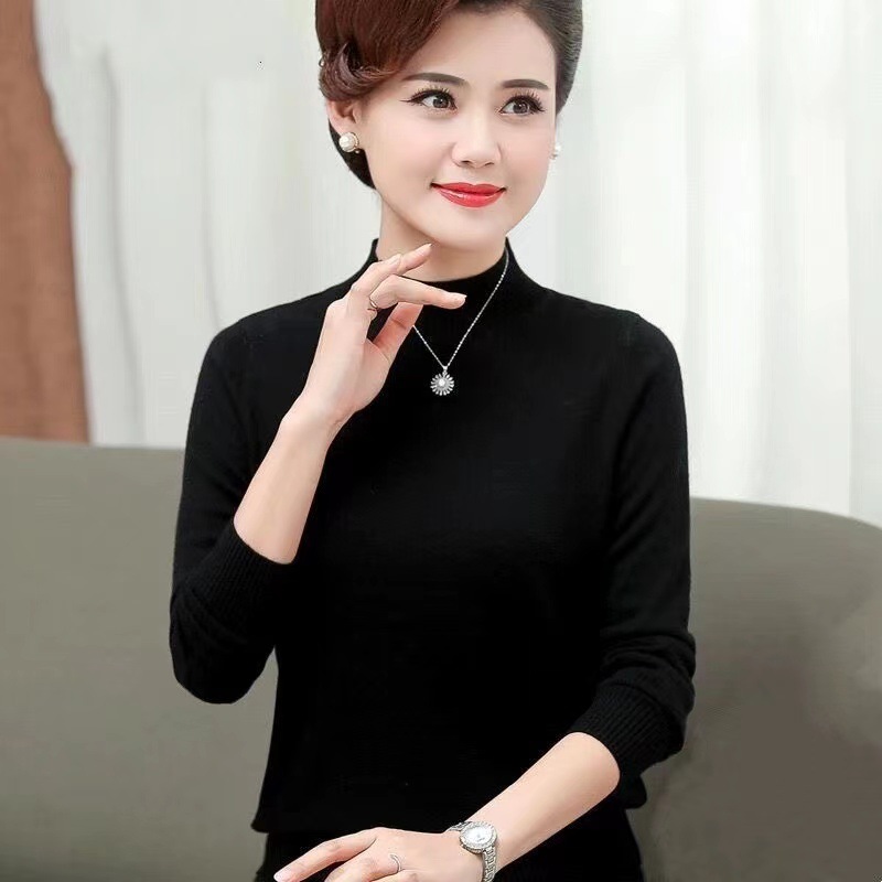 中年妈妈装针织毛衣女中老年人女装秋冬打底衫半高领内搭毛衣洋气