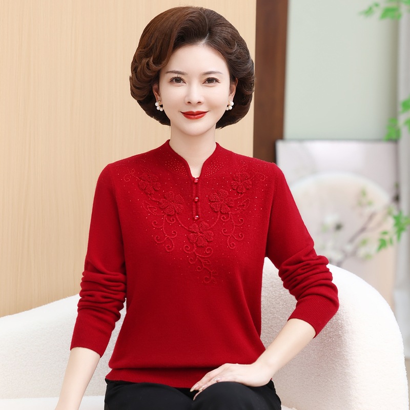 轻奢高贵洋气妈妈春秋新款毛衫中老年女装宽松加厚毛衣打底衫上衣