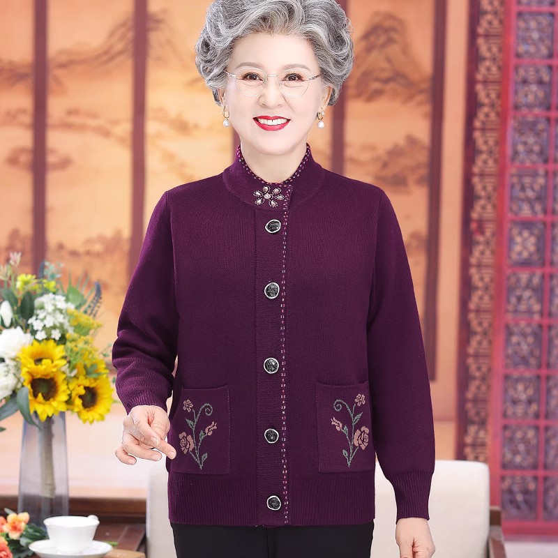 お年寄りの秋の服の女性の羊のセーターのカーディガン70歳の80老人のお母さんの奥さんの上着の90おばあさんの春と秋の服
