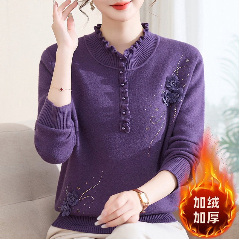中年女装木耳领加绒保暖打底衫女冬季妈妈内搭针织上衣一体绒毛衣