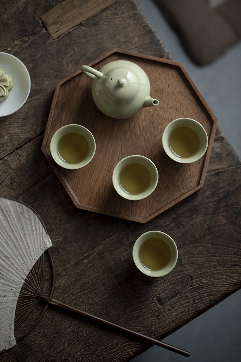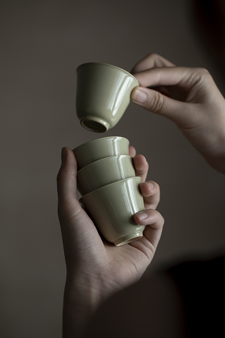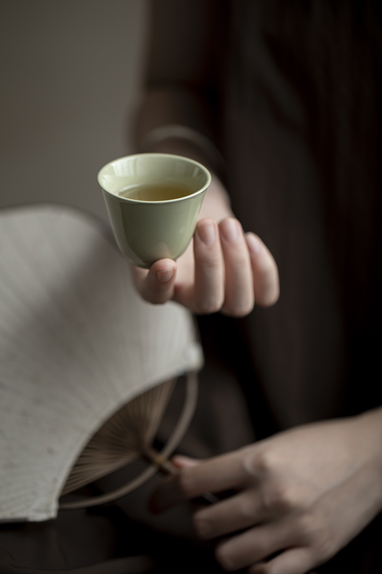墨己 越窯青磁 艾草青悦心花口香杯 香りカップ 茶器 陶器 茶杯 シングルカップ