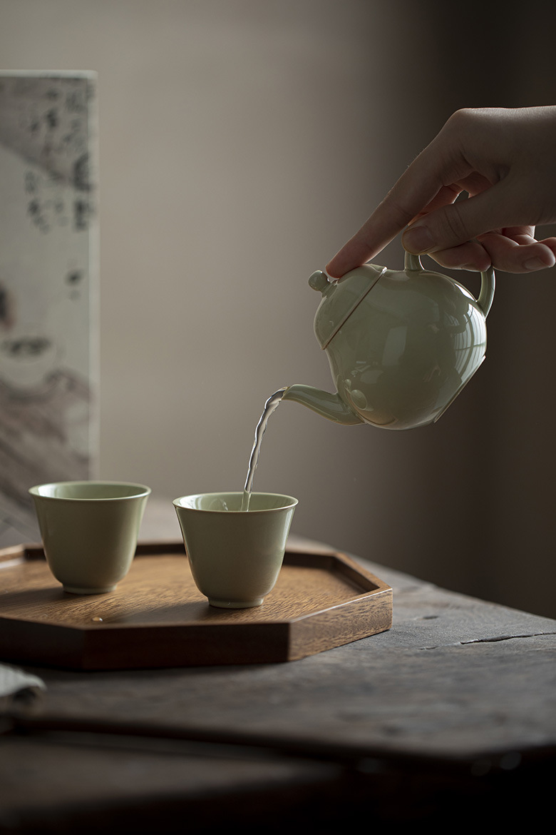 墨己越窯青磁彫刻主人杯伝統耀州窯家庭用カップ