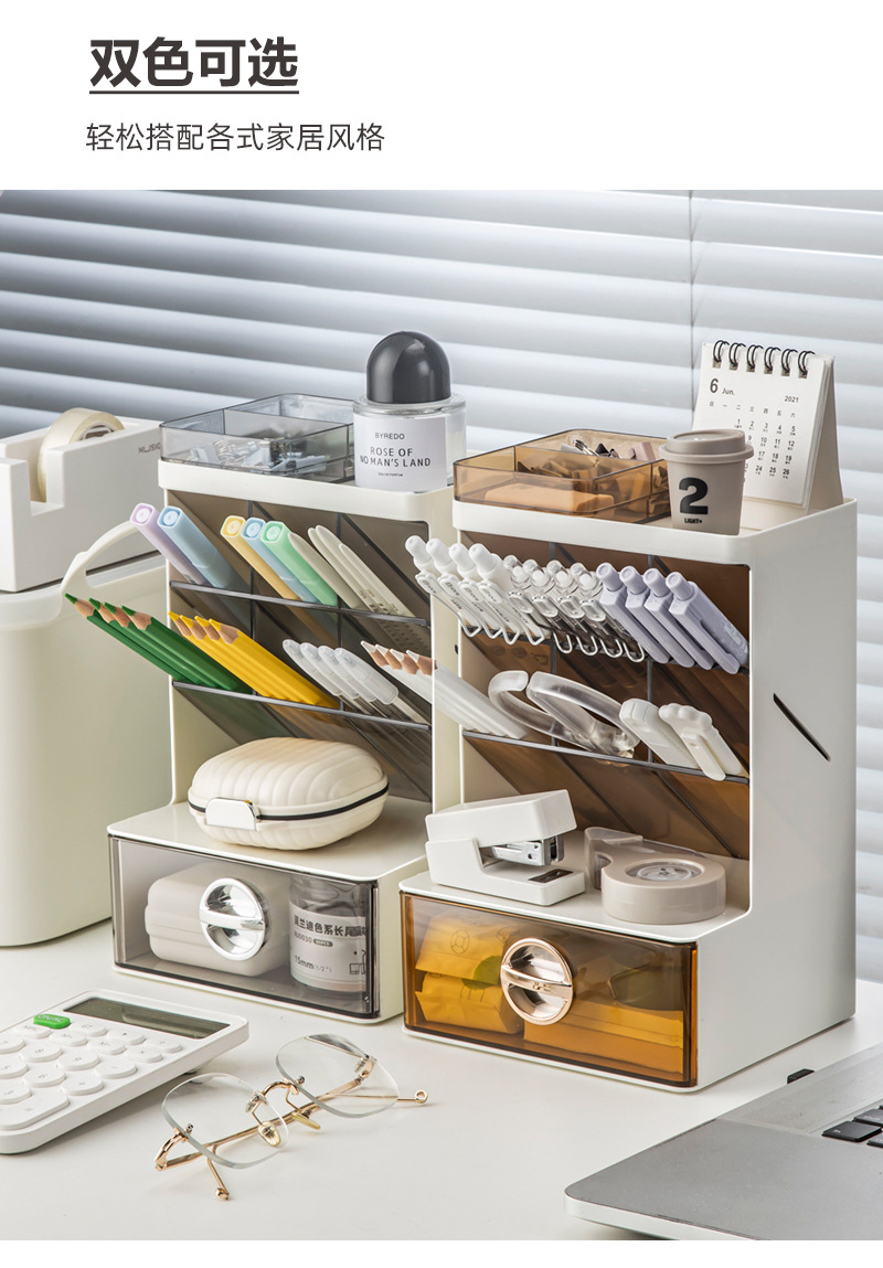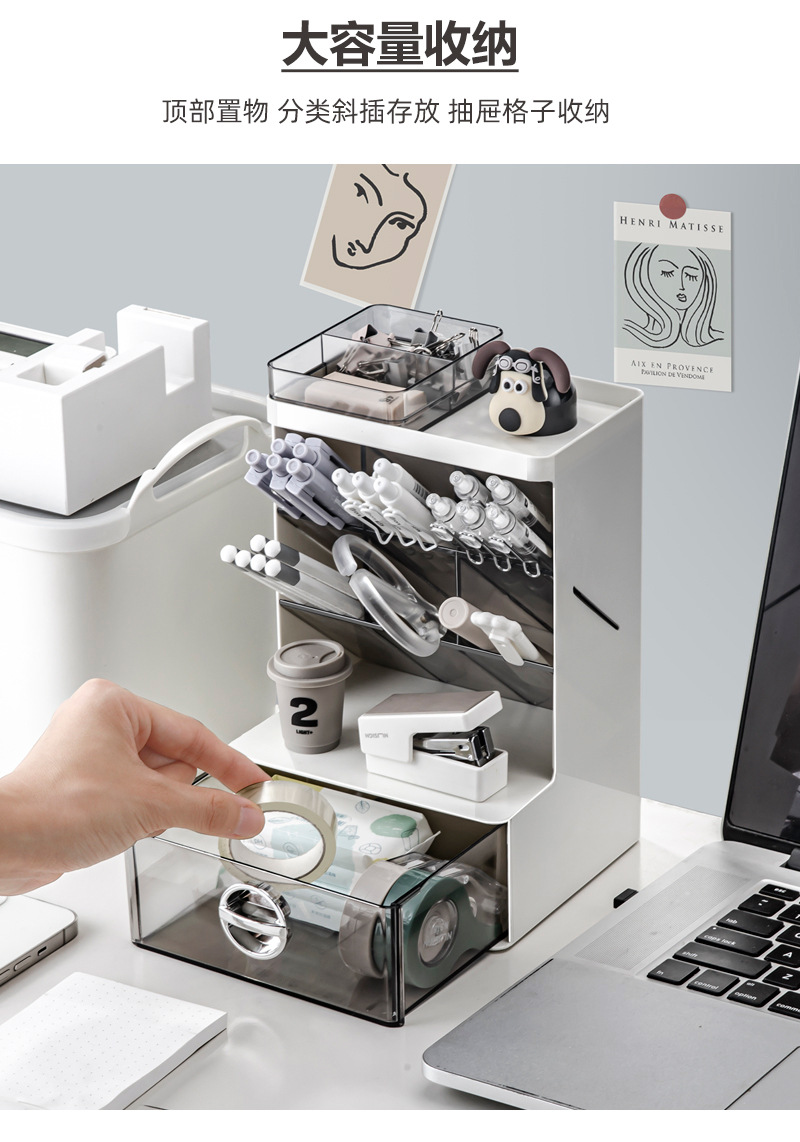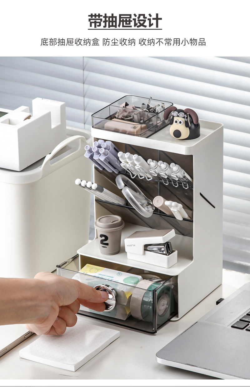 斜め挿し式文房具収納ボックス引き出し式多層デスクトップ整理化粧品筆筒オフィス文房具収納ペンホルダー