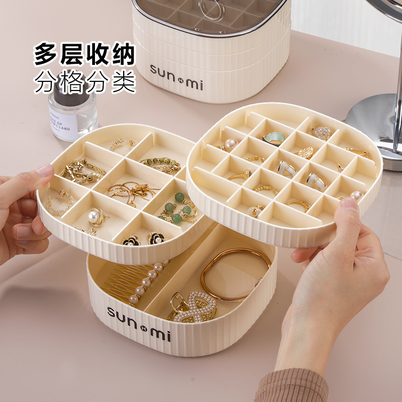 レトロなクリーム風ジュエリー収納ボックス、多層仕切り付き、イヤリング、ネックレス、指輪、時計、アクセサリーボックス、ジュエリーボックス