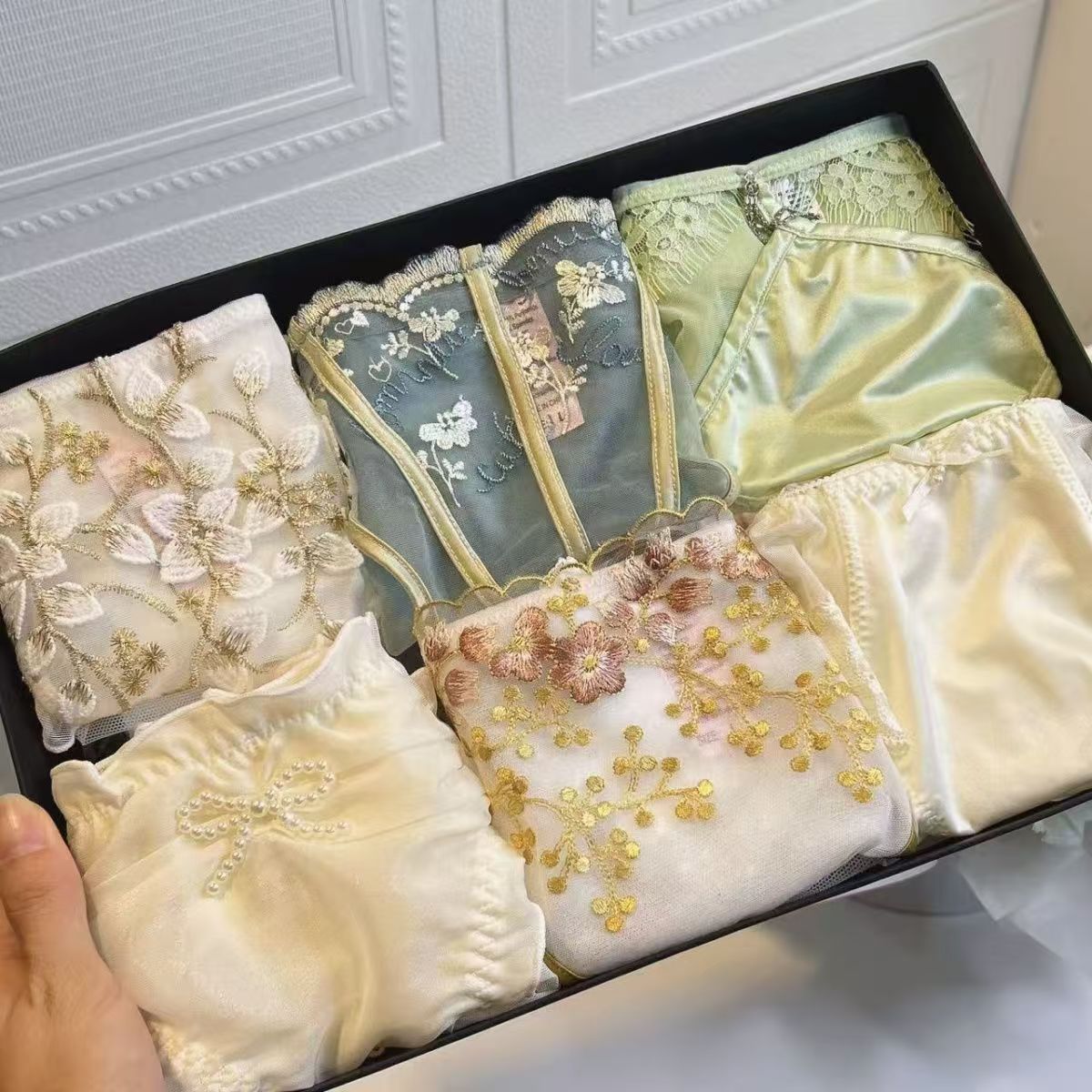 法式稚嫩甜甜裤温柔小清新少女蝴蝶结细带内裤女艾草网孔透气内档