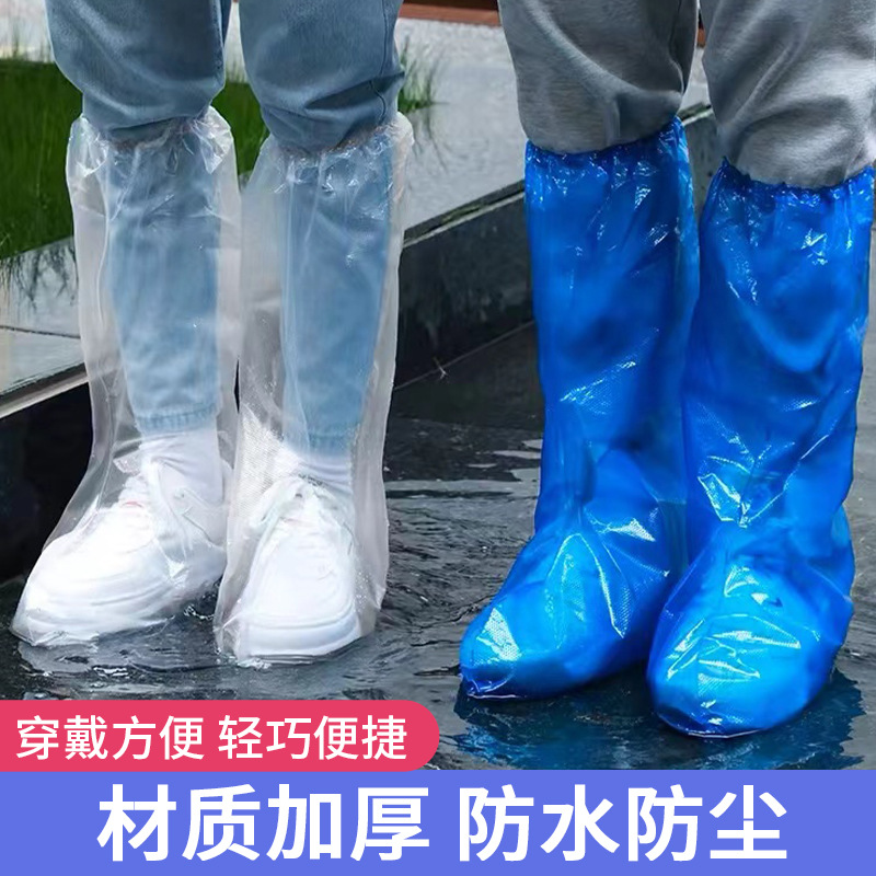 使い捨て雨靴防水滑り止め高筒靴カバー雨の日に厚い耐摩耗性透明プラスチック足カバー外着防雨