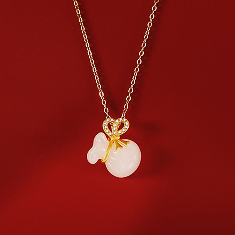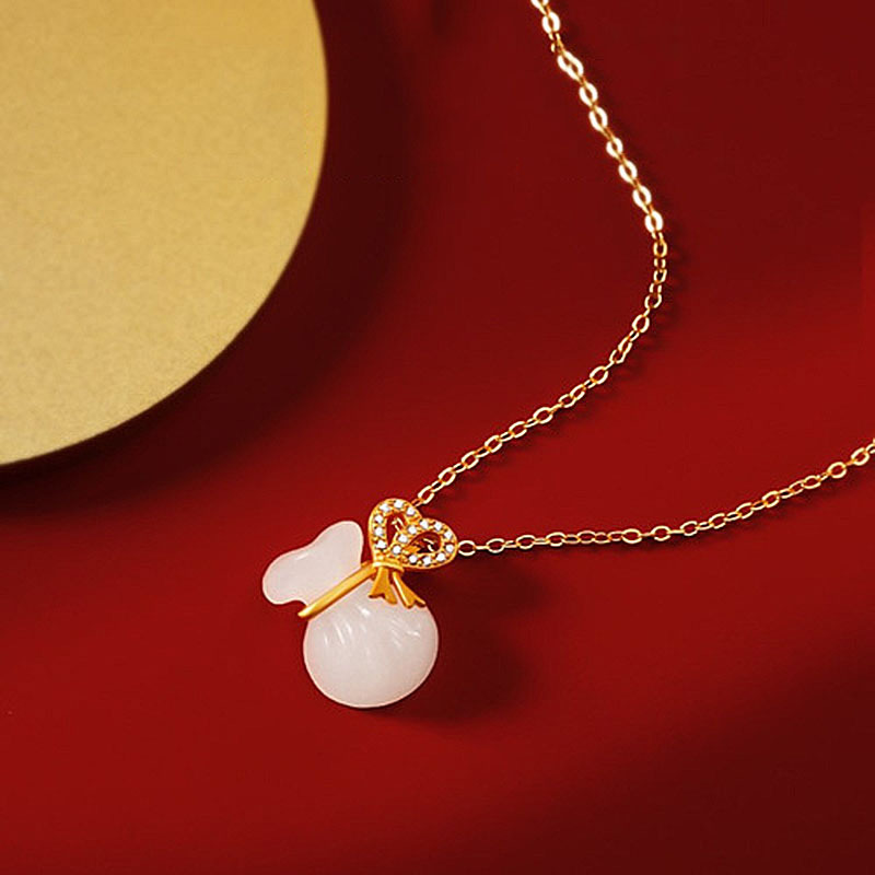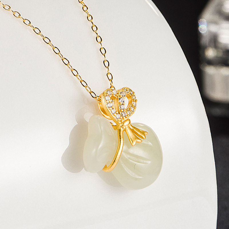 純銀古法和田玉質祝福袋ペンダントネックレス玉質ペンダント925銀金玉