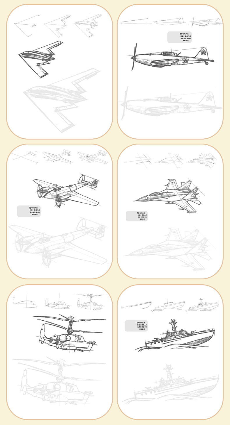 飛行機の自動車線の原稿は本艦船の武器の戦闘機の戦車の漫画の漫画のペンの技法をなぞらえます。