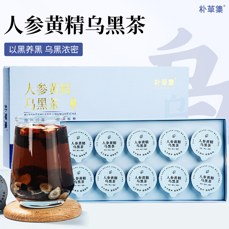 人参黄精五黑茶黑豆黑米黑芝麻养发亳州养生茶独立小罐装袋泡茶