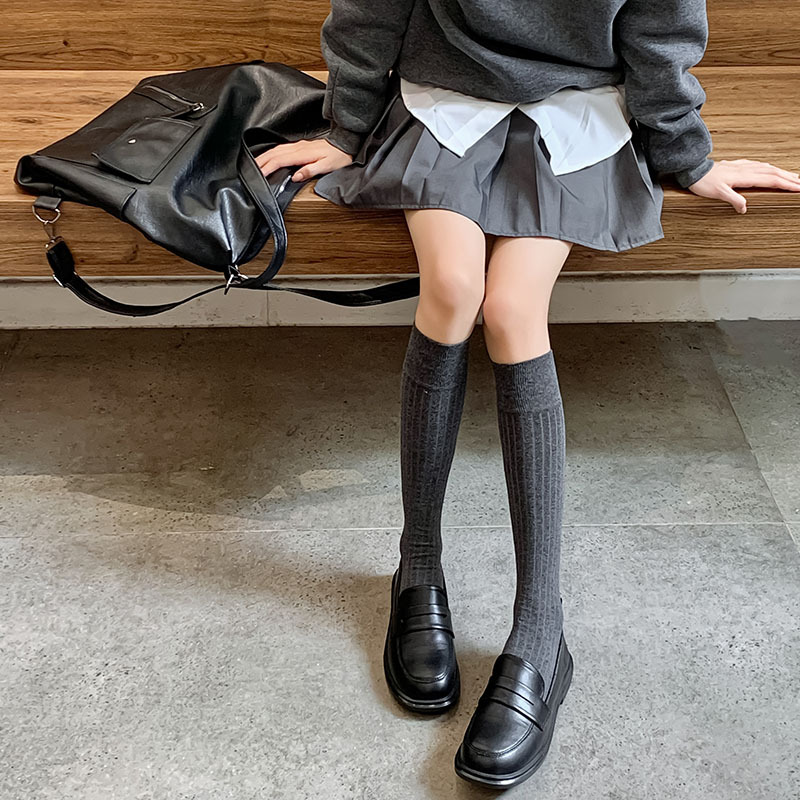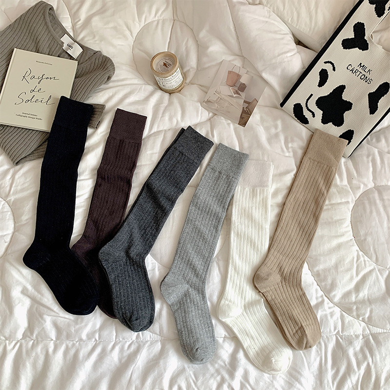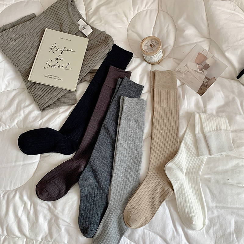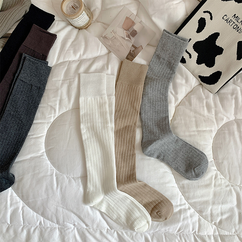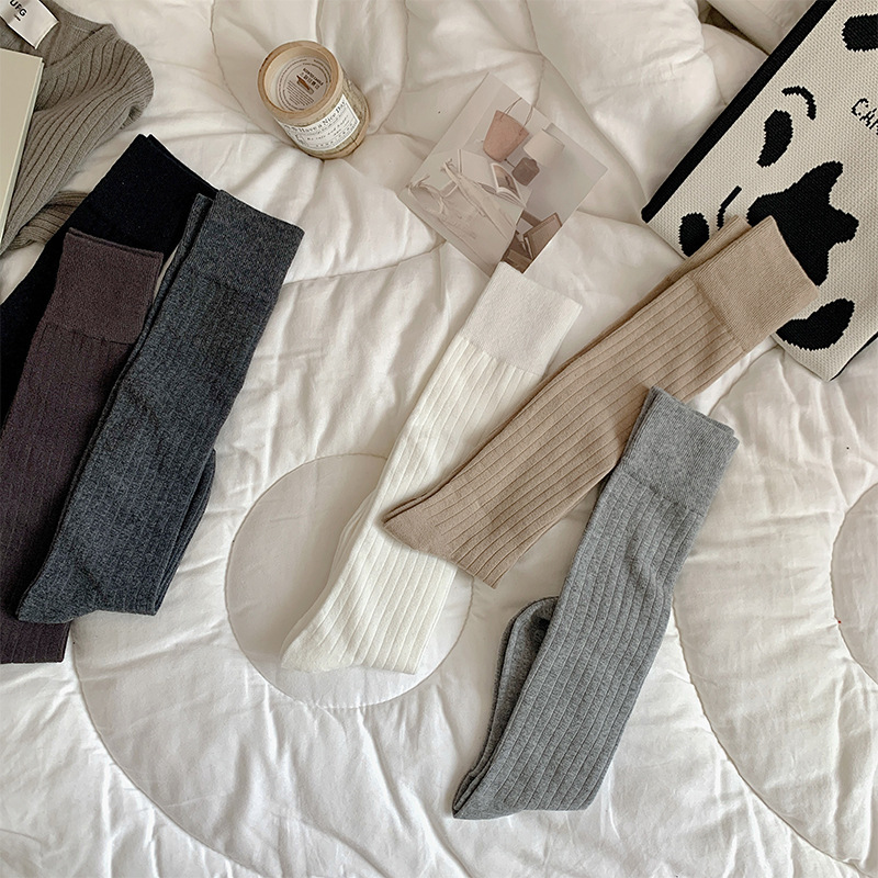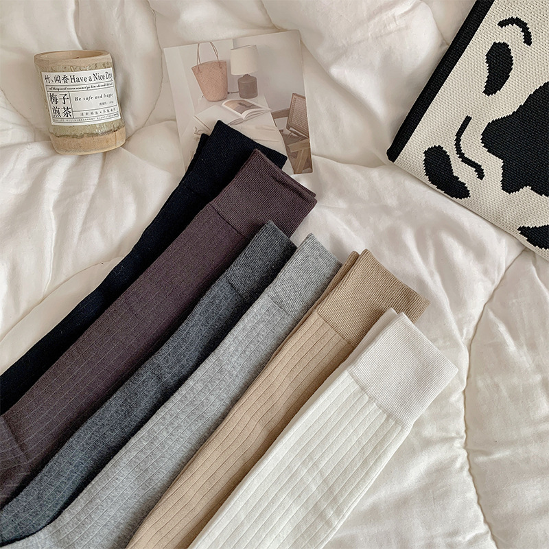 韩系简约纯色竖条显瘦针织小腿袜女秋冬百搭软糯舒适学院风堆堆袜