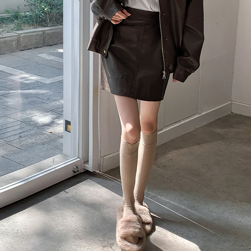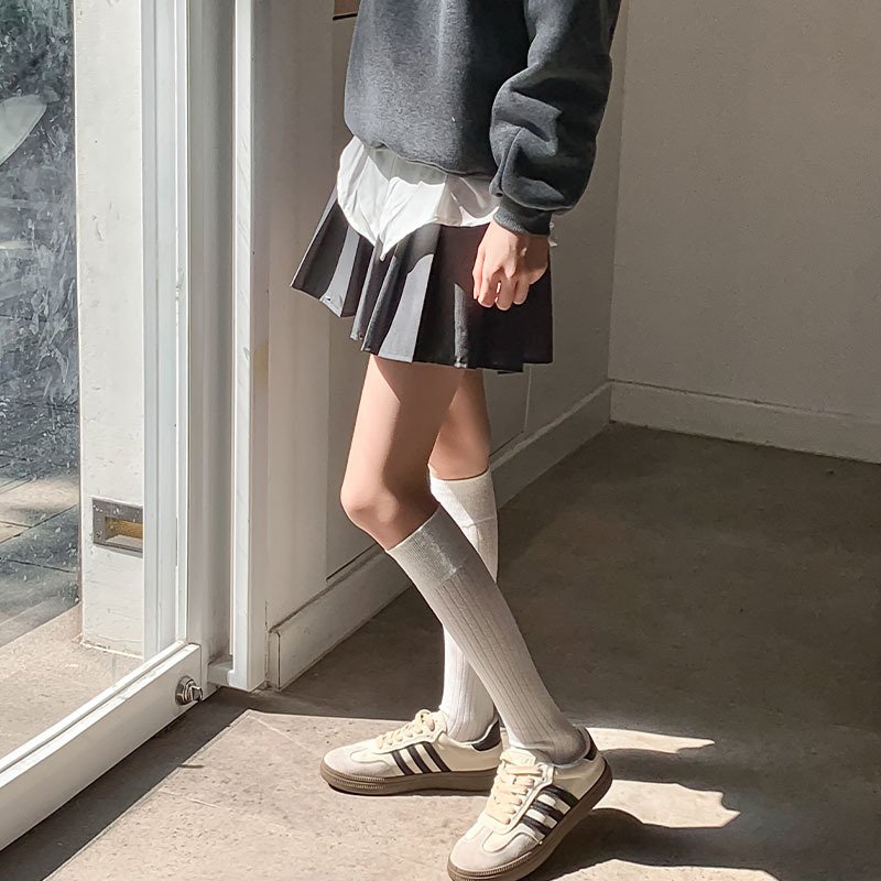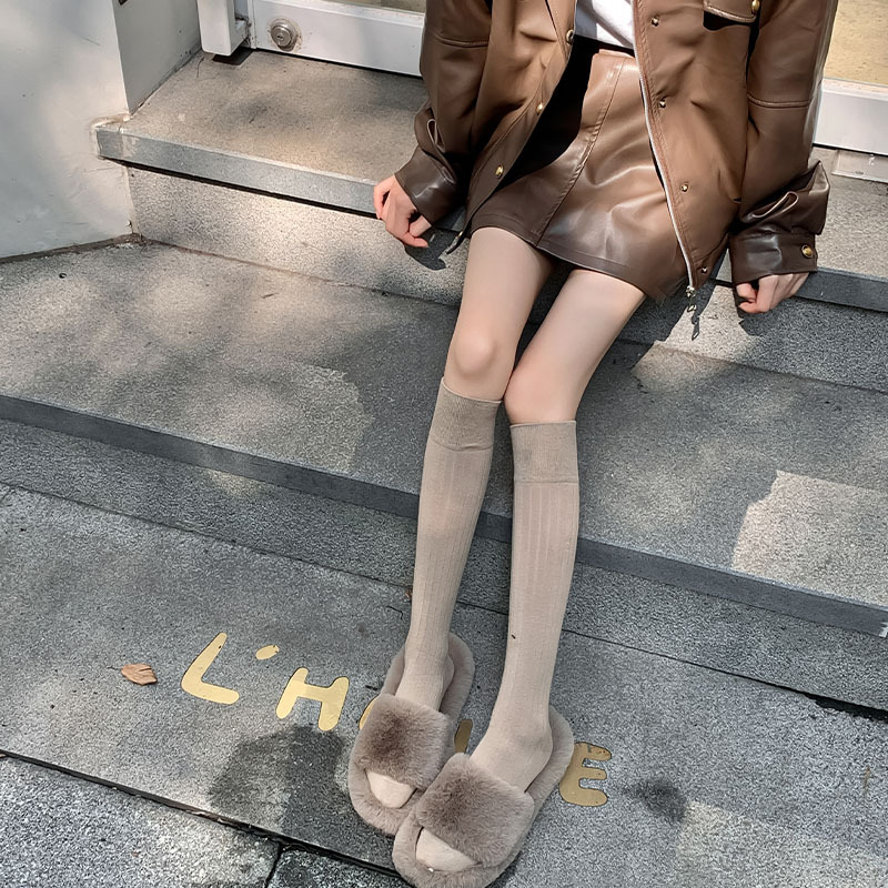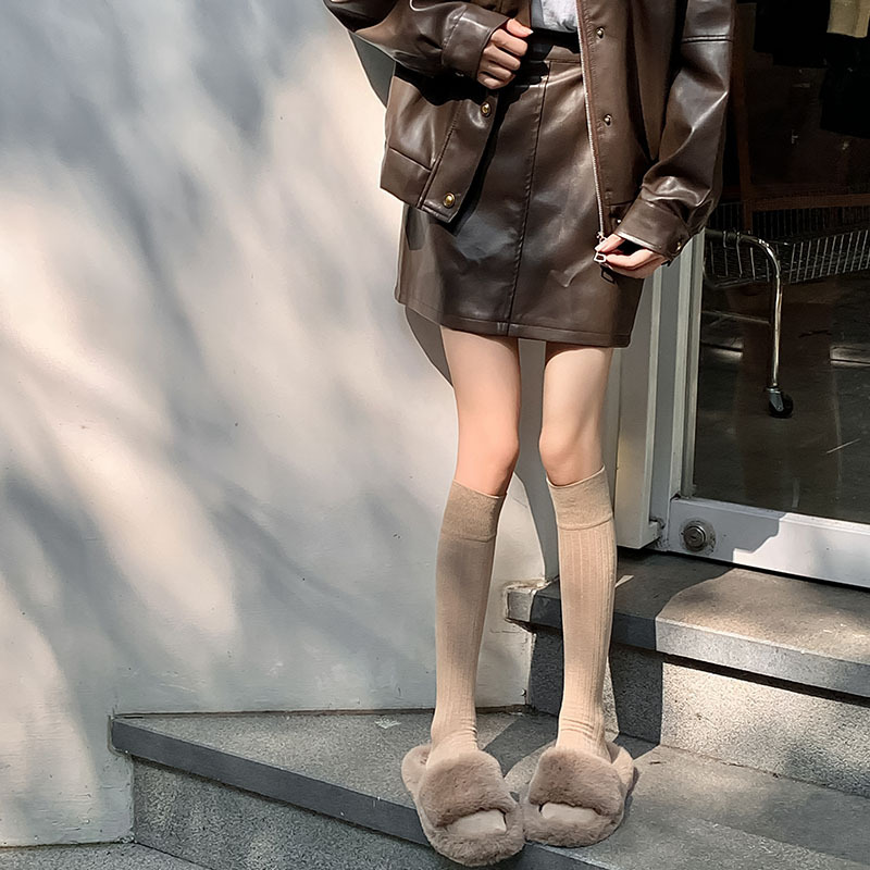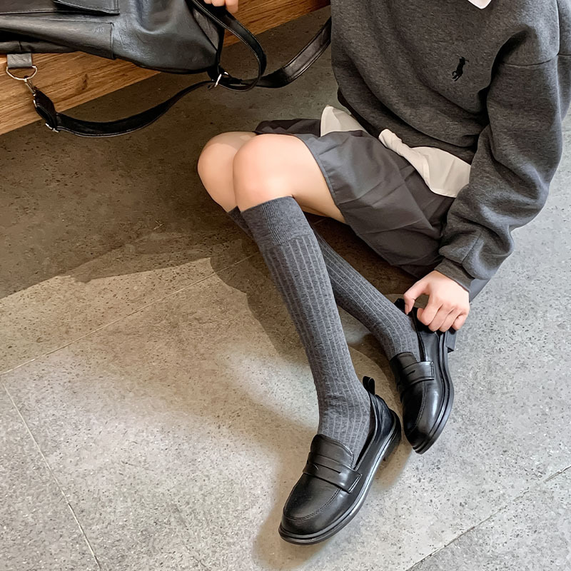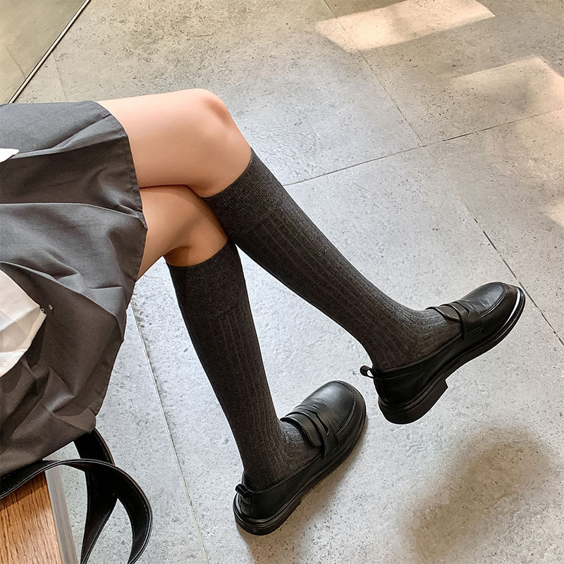 韩系简约纯色竖条显瘦针织小腿袜女秋冬百搭软糯舒适学院风堆堆袜