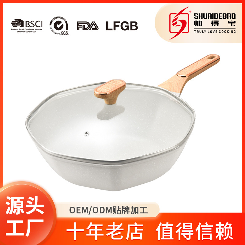2.不粘厨具传热均匀,使用时只须用中至小火,便可烹调出美味食物。采用大火时,应注意避免烧到把手,且不可干烧,锅内必须有食物或水。