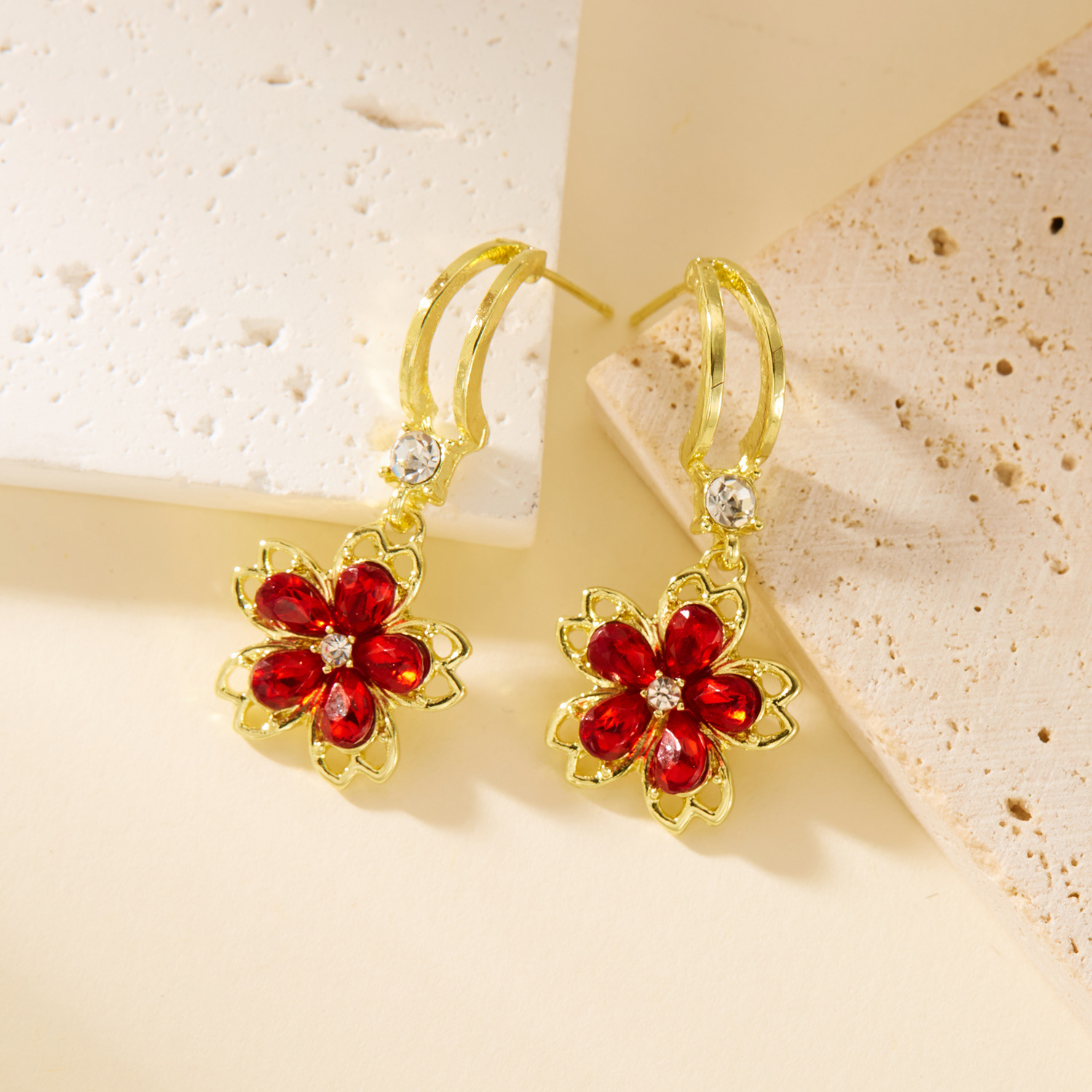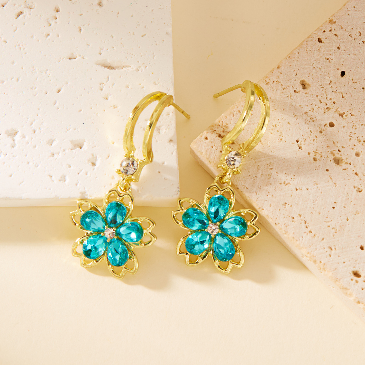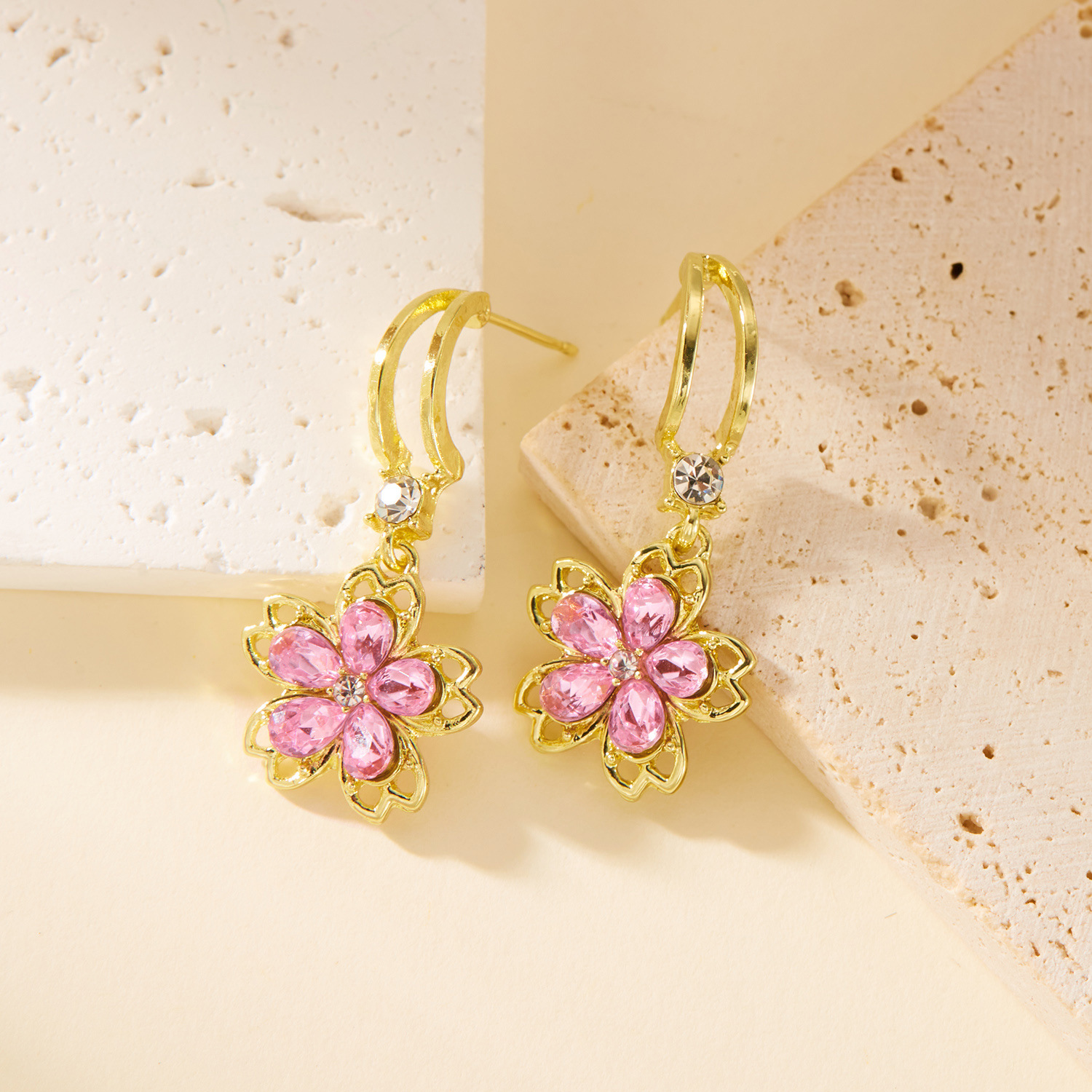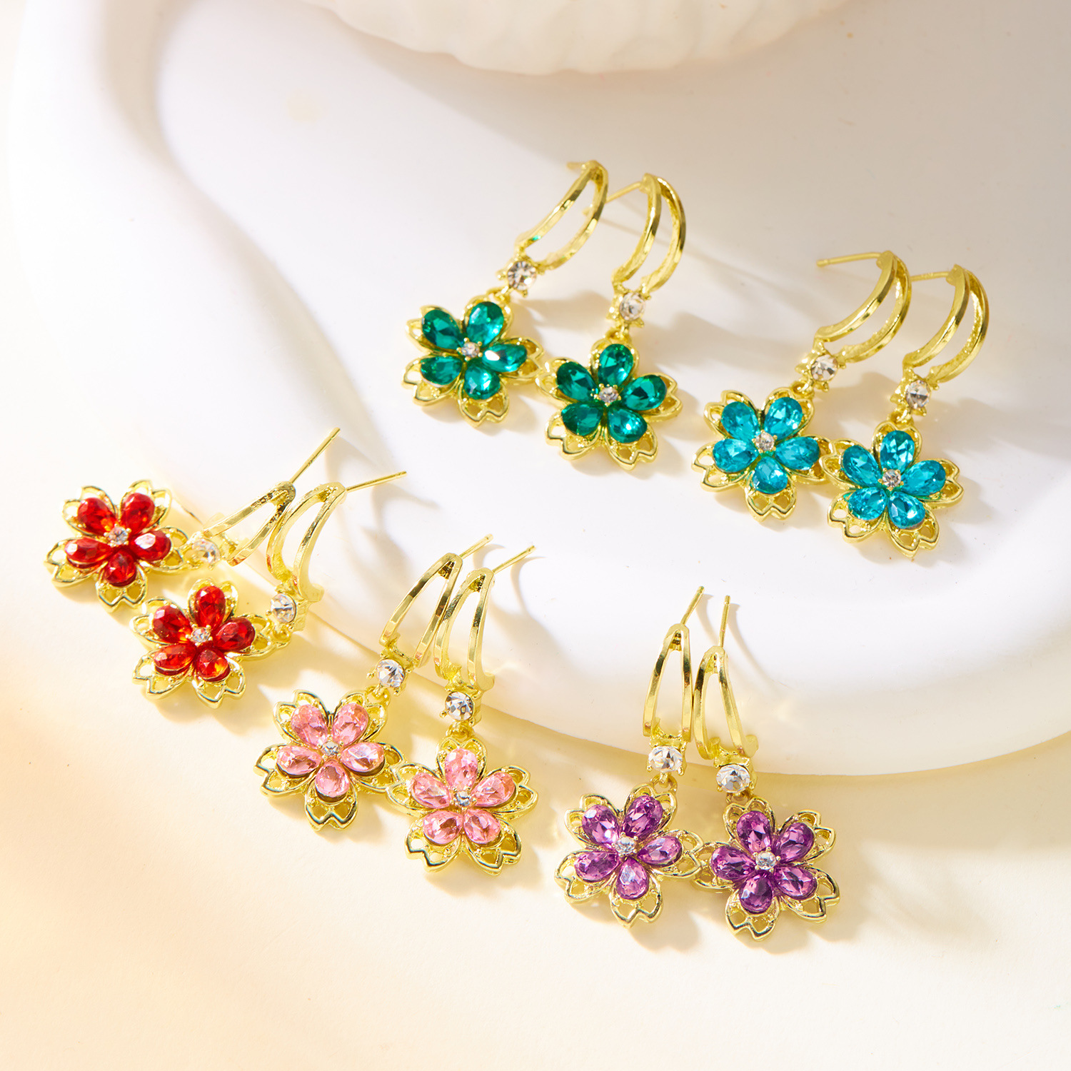 韓国風新作フラワーイヤリング レディース 上品 ダイヤモンド風クリスタルフラワーイヤリング おしゃれ 小花イヤリング 卸売