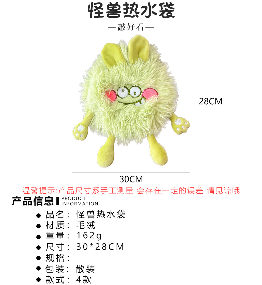 かわいいぬいぐるみモンスター湯たんぽ冬防寒神器注水暖かい手宝少女二重湯たんぽ卸売り