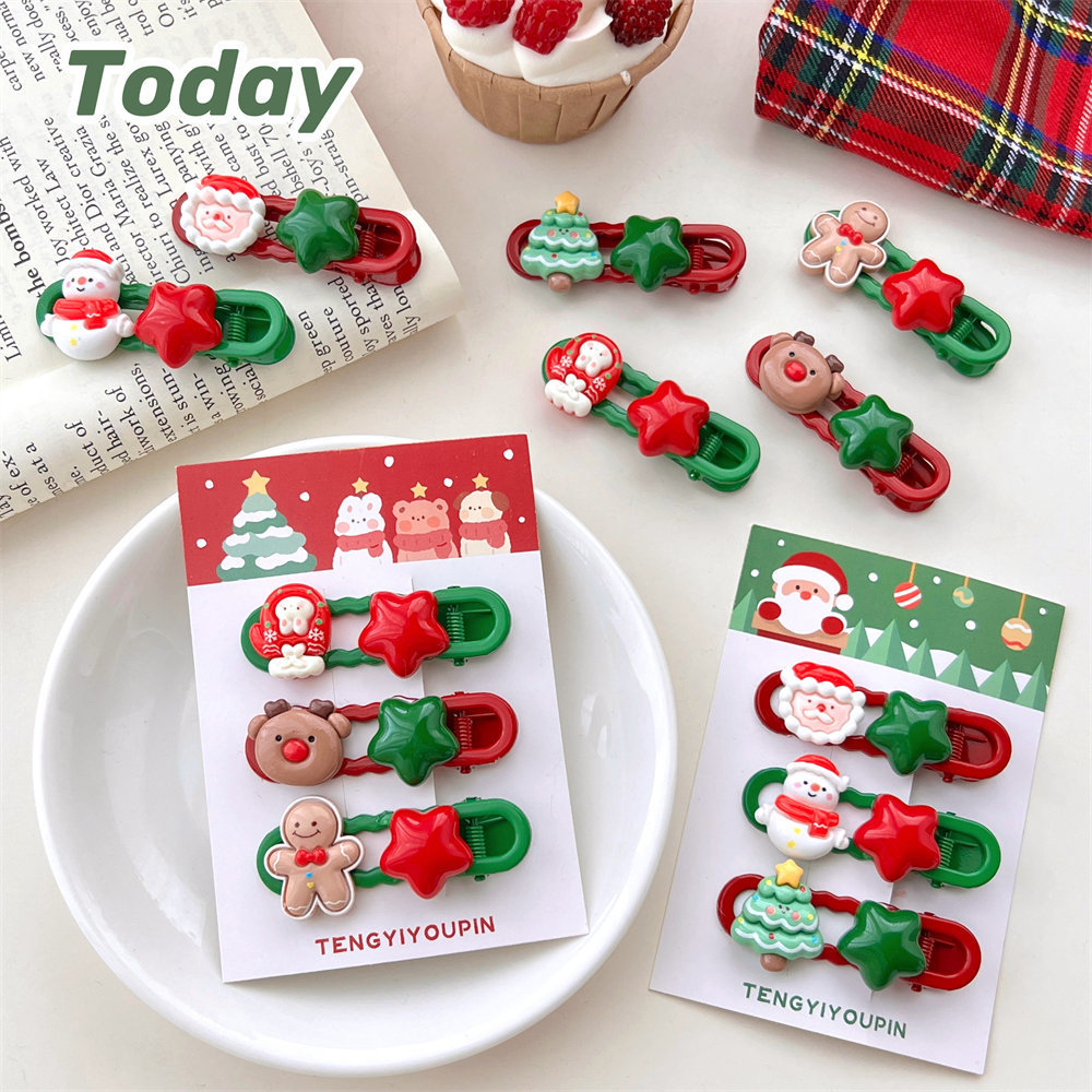 クリスマスのかわいい漫画のヘアピンの組み合わせは甘い少女の祝日を装って前髪を飾って学生の髪飾りを挟みます。