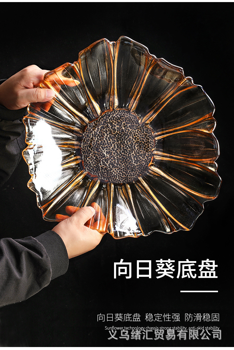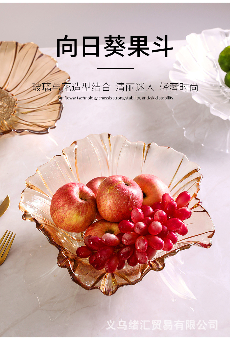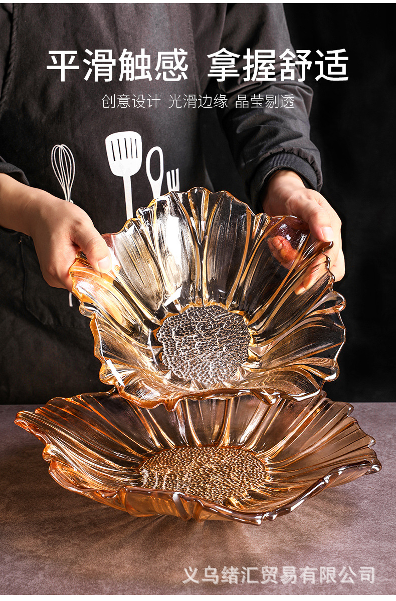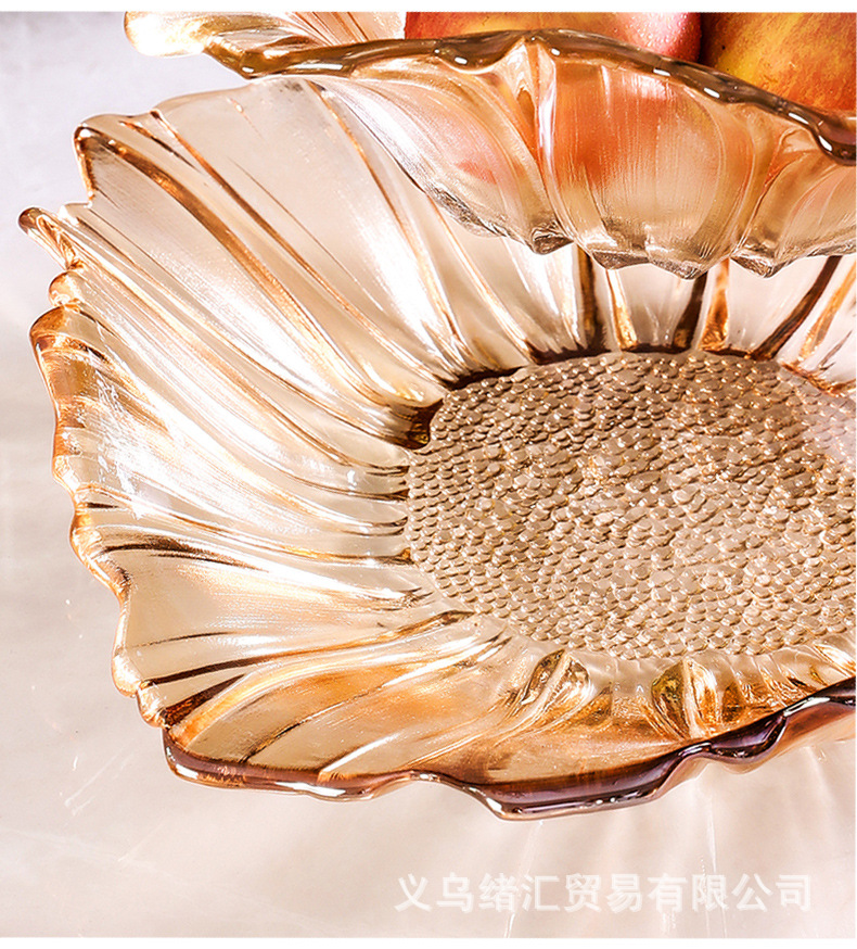 軽くて豪華な風のガラスの果物の皿のひまわりの家庭用の客間は簡単に果物の皿の個性の間食を並べます。