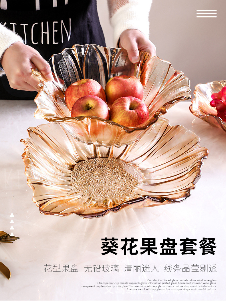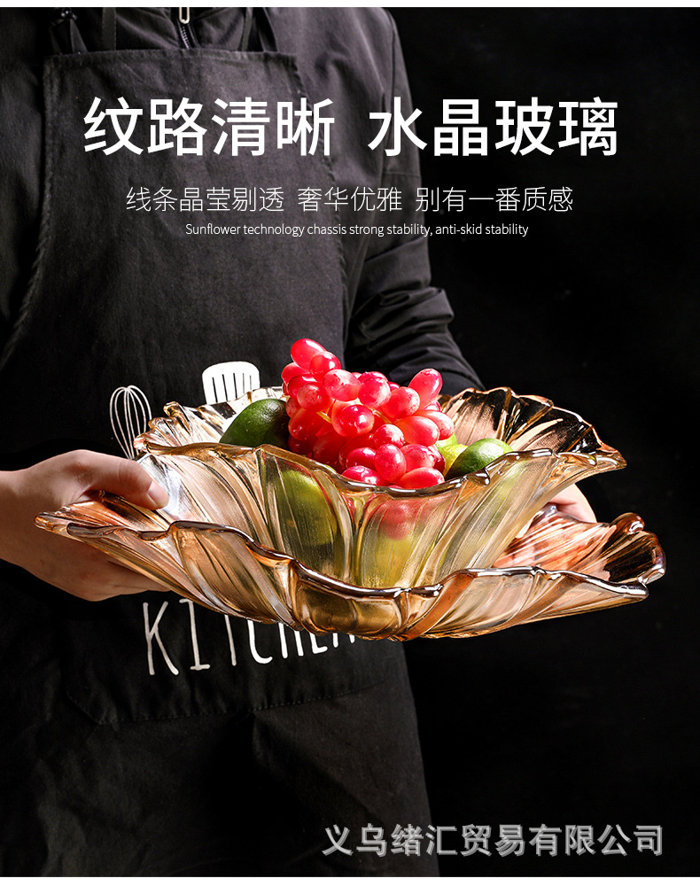 客間家庭用果物皿北欧風創意個性ネット赤大サイズ果物皿現代シンプル水晶ガラス皿