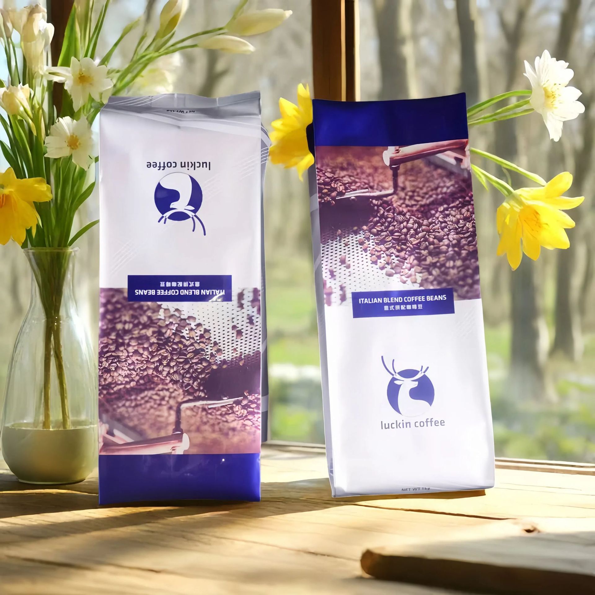 1000グラム空気バルブコーヒーバッグ四辺シール食品包装袋印刷側ジッパー茶葉コーヒー豆包装袋