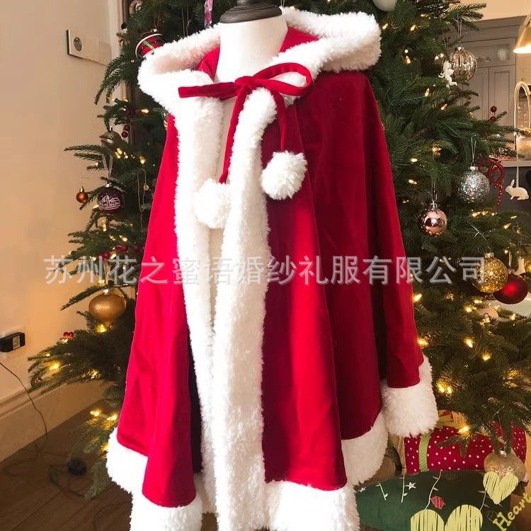 跨境新款欧美圣诞披风圣诞斗篷套装圣诞装圣诞老人节日服装女披肩