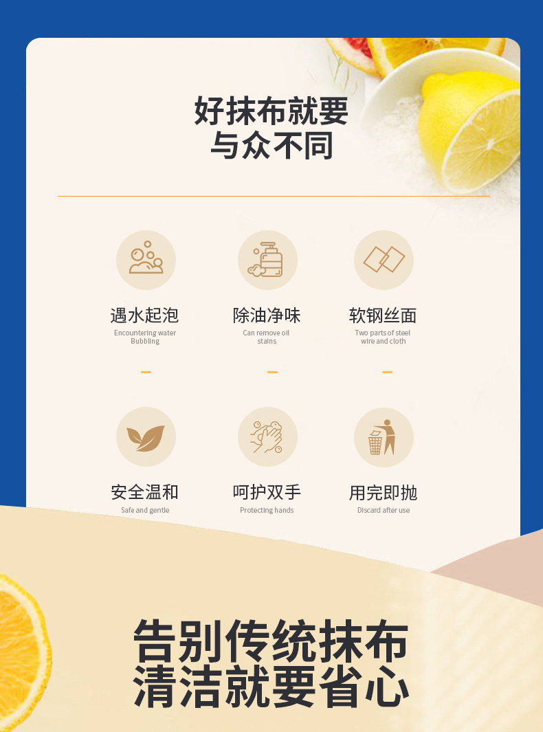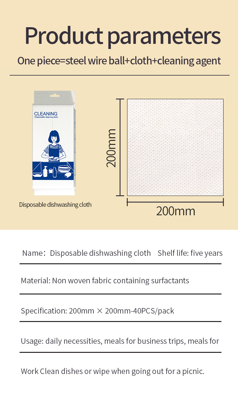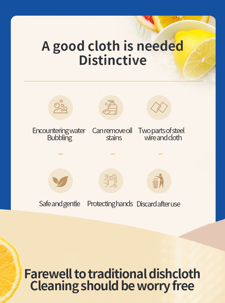 外国貿易向けキッチン用耐摩耗性使い捨て布、汚れ落とし、鍋洗い、食器洗い、テーブル拭き、楽々キッチン清掃